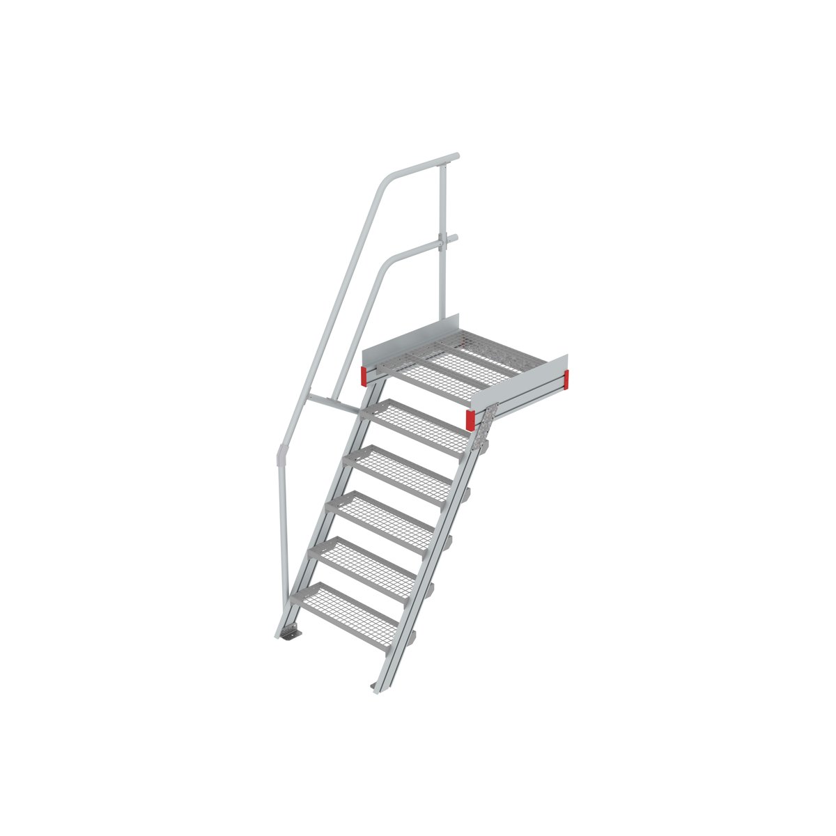 Podesttreppe 60° mit 6 Stufen 800 mm breiteuroline – der sichere AufstiegStahl Gitterrost – Podesttreppen für individuelle Lösungen: Wetterfest, robust, sehr stabil und belastbar. Für das sichere Erreichen von Zwischenböden, höher gelegenen Türen an Industriehallen oder anderen Gebäuden oder für Wartungsarbeiten an Fertigungslinien. Die hervorragend verarbeitete Steigtechnik Produktserie vereint Sicherheit und Flexibilität. Die verschiedenen Steigungswinkel; 45° für einen bequemen Aufstieg, 60° für beengte Platzverhältnisse, 3 Standard-Stufenbreiten (600 mm, 800 mm, 1000 mm) finden Sie in unseren Empfehlungen verlinkt. Als Standard – Stufenausführungen haben Sie die Wahl zwischen Stufen in Alu-gerieft oder Stahl-Gitterroststufen. Gitterrost bietet den Vorteil, dass Schmutz und Flüssigkeiten, wie Regenwasser einfacher entweichen können. Dadurch ist die Treppe besonders im Außenbereich …
