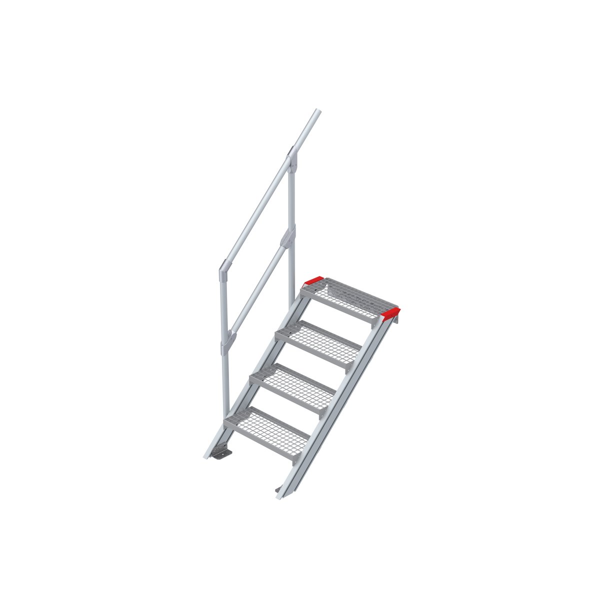 Treppe 45° mit 4 Stufen 600 mm breiteuroline – der sichere AufstiegStahl Gitterrost Treppen für individuelle Lösungen: wetterfest, robust, sehr stabil und belastbar. Für Arbeiten in der Höhe, als Maschinentreppe, zum Erreichen von höher gelegenen Ebenen in Industrie und Handwerk, als Zustieg oder als Bautreppe in der Rohbau- oder Ausbauphase bis zum Einbau der endgültigen Treppe. Die hervorragend verarbeitete Steigtechnik Produktserie vereint Sicherheit und Flexibilität. Die verschiedenen Steigungswinkel; 45° für einen bequemen Aufstieg, 60° für beengte Platzverhältnisse, 3 Standard-Stufenbreiten (600 mm, 800 mm, 1000 mm) finden Sie in unseren Empfehlungen verlinkt. Als Standard – Stufenausführungen haben Sie die Wahl zwischen Stufen in Alu-gerieft oder Stahl-Gitterroststufen. Gitterrost bietet den Vorteil, dass Schmutz und Flüssigkeiten, wie Regenwasser einfacher entweichen können. …