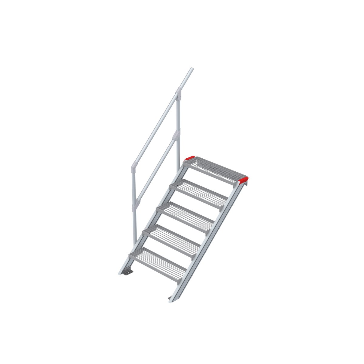 Treppe 45° mit 5 Stufen 800 mm breiteuroline – der sichere AufstiegStahl Gitterrost Treppen für individuelle Lösungen: wetterfest, robust, sehr stabil und belastbar. Für Arbeiten in der Höhe, als Maschinentreppe, zum Erreichen von höher gelegenen Ebenen in Industrie und Handwerk, als Zustieg oder als Bautreppe in der Rohbau- oder Ausbauphase bis zum Einbau der endgültigen Treppe. Die hervorragend verarbeitete Steigtechnik Produktserie vereint Sicherheit und Flexibilität. Die verschiedenen Steigungswinkel; 45° für einen bequemen Aufstieg, 60° für beengte Platzverhältnisse, 3 Standard-Stufenbreiten (600 mm, 800 mm, 1000 mm) finden Sie in unseren Empfehlungen verlinkt. Als Standard – Stufenausführungen haben Sie die Wahl zwischen Stufen in Alu-gerieft oder Stahl-Gitterroststufen. Gitterrost bietet den Vorteil, dass Schmutz und Flüssigkeiten, wie Regenwasser einfacher entweichen können. D…