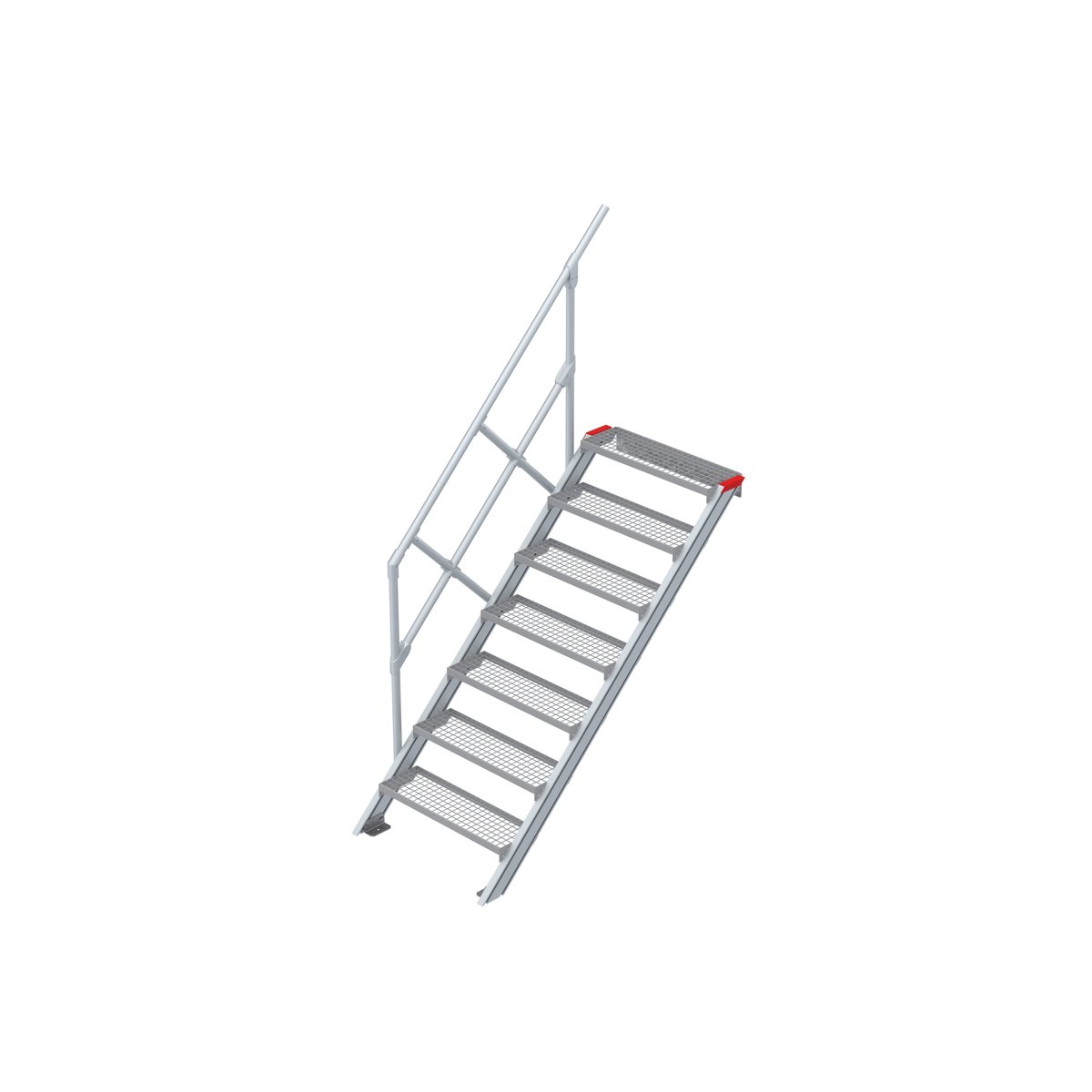 Treppe 45° mit 7 Stufen 800 mm breiteuroline – der sichere AufstiegStahl Gitterrost Treppen für individuelle Lösungen: wetterfest, robust, sehr stabil und belastbar. Für Arbeiten in der Höhe, als Maschinentreppe, zum Erreichen von höher gelegenen Ebenen in Industrie und Handwerk, als Zustieg oder als Bautreppe in der Rohbau- oder Ausbauphase bis zum Einbau der endgültigen Treppe. Die hervorragend verarbeitete Steigtechnik Produktserie vereint Sicherheit und Flexibilität. Die verschiedenen Steigungswinkel; 45° für einen bequemen Aufstieg, 60° für beengte Platzverhältnisse, 3 Standard-Stufenbreiten (600 mm, 800 mm, 1000 mm) finden Sie in unseren Empfehlungen verlinkt. Als Standard – Stufenausführungen haben Sie die Wahl zwischen Stufen in Alu-gerieft oder Stahl-Gitterroststufen. Gitterrost bietet den Vorteil, dass Schmutz und Flüssigkeiten, wie Regenwasser einfacher entweichen können. D…