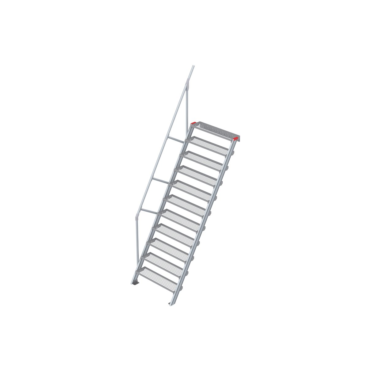 Treppe 60° mit 11 Stufen 1000 mm breiteuroline – der sichere AufstiegStahl Gitterrost Treppen für individuelle Lösungen: wetterfest, robust, sehr stabil und belastbar. Für Arbeiten in der Höhe, als Maschinentreppe, zum Erreichen von höher gelegenen Ebenen in Industrie und Handwerk, als Zustieg oder als Bautreppe in der Rohbau- oder Ausbauphase bis zum Einbau der endgültigen Treppe. Die hervorragend verarbeitete Steigtechnik Produktserie vereint Sicherheit und Flexibilität. Die verschiedenen Steigungswinkel; 45° für einen bequemen Aufstieg, 60° für beengte Platzverhältnisse, 3 Standard-Stufenbreiten (600 mm, 800 mm, 1000 mm) finden Sie in unseren Empfehlungen verlinkt. Als Standard – Stufenausführungen haben Sie die Wahl zwischen Stufen in Alu-gerieft oder Stahl-Gitterroststufen. Gitterrost bietet den Vorteil, dass Schmutz und Flüssigkeiten, wie Regenwasser einfacher entweichen können….
