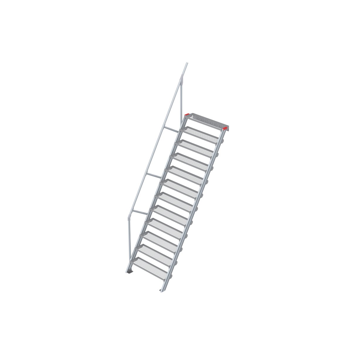 Treppe 60° mit 12 Stufen 1000 mm breiteuroline – der sichere AufstiegStahl Gitterrost Treppen für individuelle Lösungen: wetterfest, robust, sehr stabil und belastbar. Für Arbeiten in der Höhe, als Maschinentreppe, zum Erreichen von höher gelegenen Ebenen in Industrie und Handwerk, als Zustieg oder als Bautreppe in der Rohbau- oder Ausbauphase bis zum Einbau der endgültigen Treppe. Die hervorragend verarbeitete Steigtechnik Produktserie vereint Sicherheit und Flexibilität. Die verschiedenen Steigungswinkel; 45° für einen bequemen Aufstieg, 60° für beengte Platzverhältnisse, 3 Standard-Stufenbreiten (600 mm, 800 mm, 1000 mm) finden Sie in unseren Empfehlungen verlinkt. Als Standard – Stufenausführungen haben Sie die Wahl zwischen Stufen in Alu-gerieft oder Stahl-Gitterroststufen. Gitterrost bietet den Vorteil, dass Schmutz und Flüssigkeiten, wie Regenwasser einfacher entweichen können….