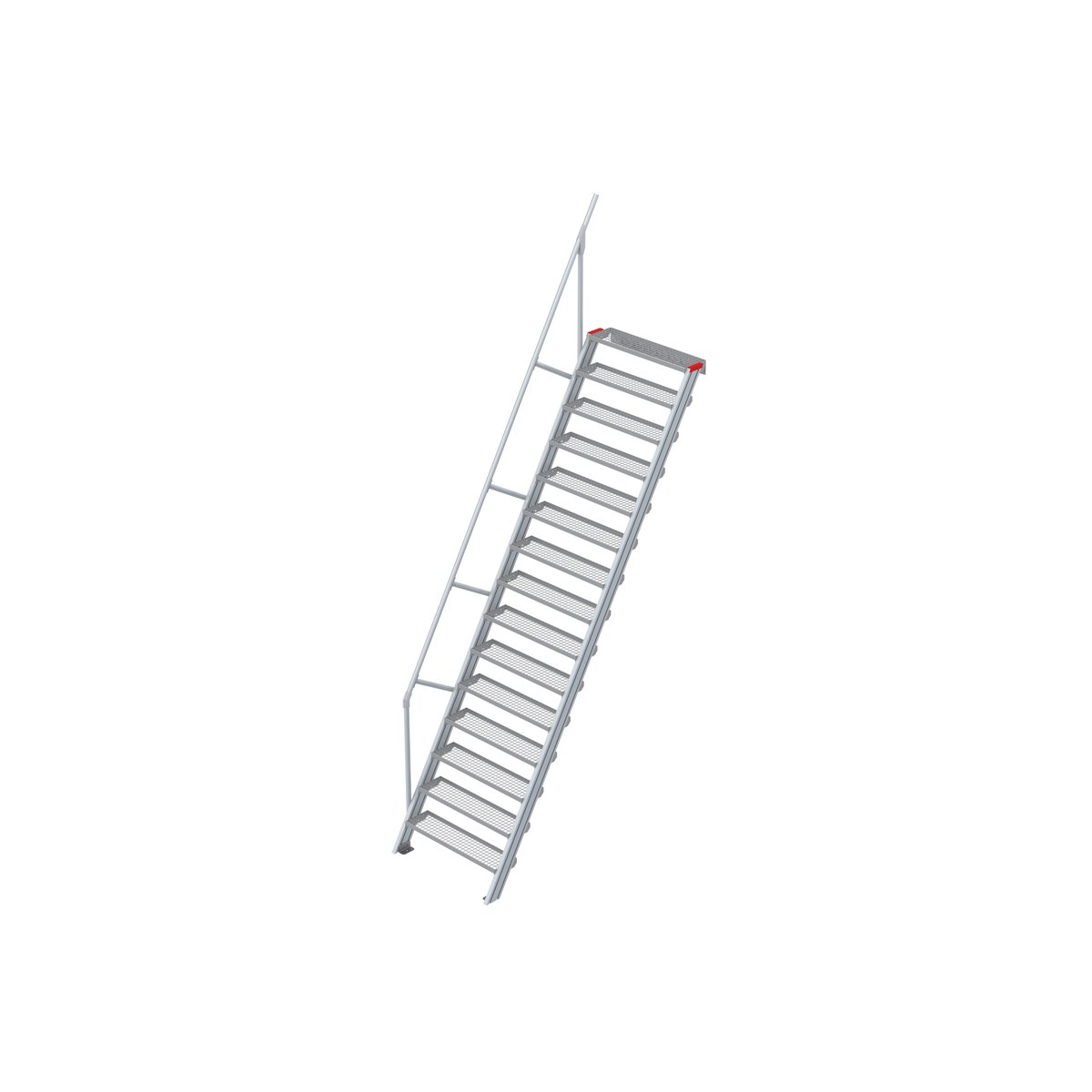 Treppe 60° mit 15 Stufen 1000 mm breiteuroline – der sichere AufstiegStahl Gitterrost Treppen für individuelle Lösungen: wetterfest, robust, sehr stabil und belastbar. Für Arbeiten in der Höhe, als Maschinentreppe, zum Erreichen von höher gelegenen Ebenen in Industrie und Handwerk, als Zustieg oder als Bautreppe in der Rohbau- oder Ausbauphase bis zum Einbau der endgültigen Treppe. Die hervorragend verarbeitete Steigtechnik Produktserie vereint Sicherheit und Flexibilität. Die verschiedenen Steigungswinkel; 45° für einen bequemen Aufstieg, 60° für beengte Platzverhältnisse, 3 Standard-Stufenbreiten (600 mm, 800 mm, 1000 mm) finden Sie in unseren Empfehlungen verlinkt. Als Standard – Stufenausführungen haben Sie die Wahl zwischen Stufen in Alu-gerieft oder Stahl-Gitterroststufen. Gitterrost bietet den Vorteil, dass Schmutz und Flüssigkeiten, wie Regenwasser einfacher entweichen können….