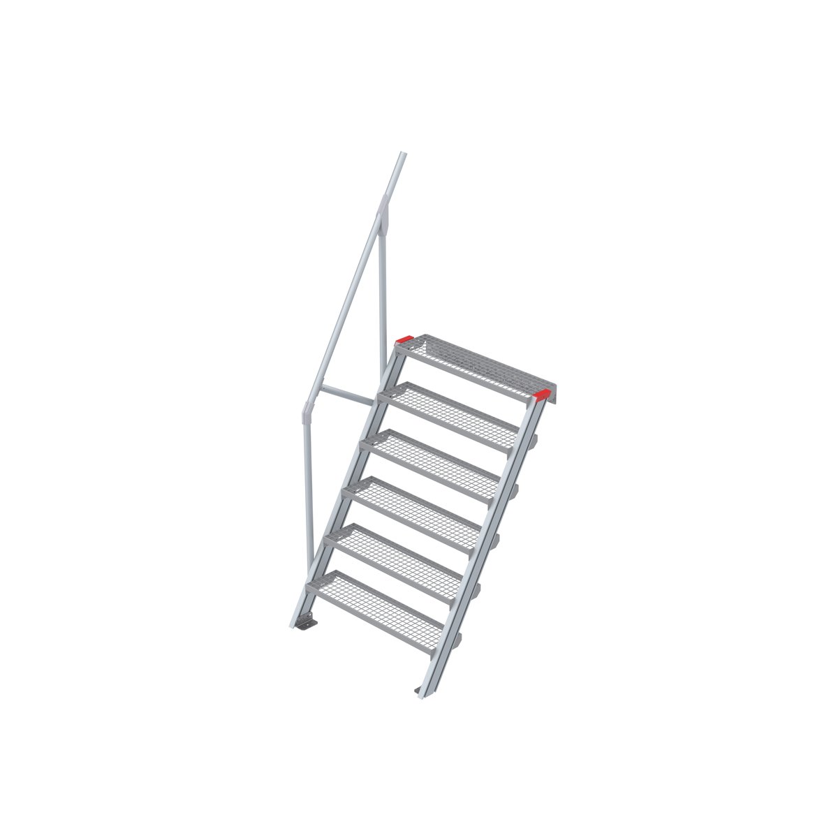 Treppe 60° mit 6 Stufen 1000 mm breiteuroline – der sichere AufstiegStahl Gitterrost Treppen für individuelle Lösungen: wetterfest, robust, sehr stabil und belastbar. Für Arbeiten in der Höhe, als Maschinentreppe, zum Erreichen von höher gelegenen Ebenen in Industrie und Handwerk, als Zustieg oder als Bautreppe in der Rohbau- oder Ausbauphase bis zum Einbau der endgültigen Treppe. Die hervorragend verarbeitete Steigtechnik Produktserie vereint Sicherheit und Flexibilität. Die verschiedenen Steigungswinkel; 45° für einen bequemen Aufstieg, 60° für beengte Platzverhältnisse, 3 Standard-Stufenbreiten (600 mm, 800 mm, 1000 mm) finden Sie in unseren Empfehlungen verlinkt. Als Standard – Stufenausführungen haben Sie die Wahl zwischen Stufen in Alu-gerieft oder Stahl-Gitterroststufen. Gitterrost bietet den Vorteil, dass Schmutz und Flüssigkeiten, wie Regenwasser einfacher entweichen können. …