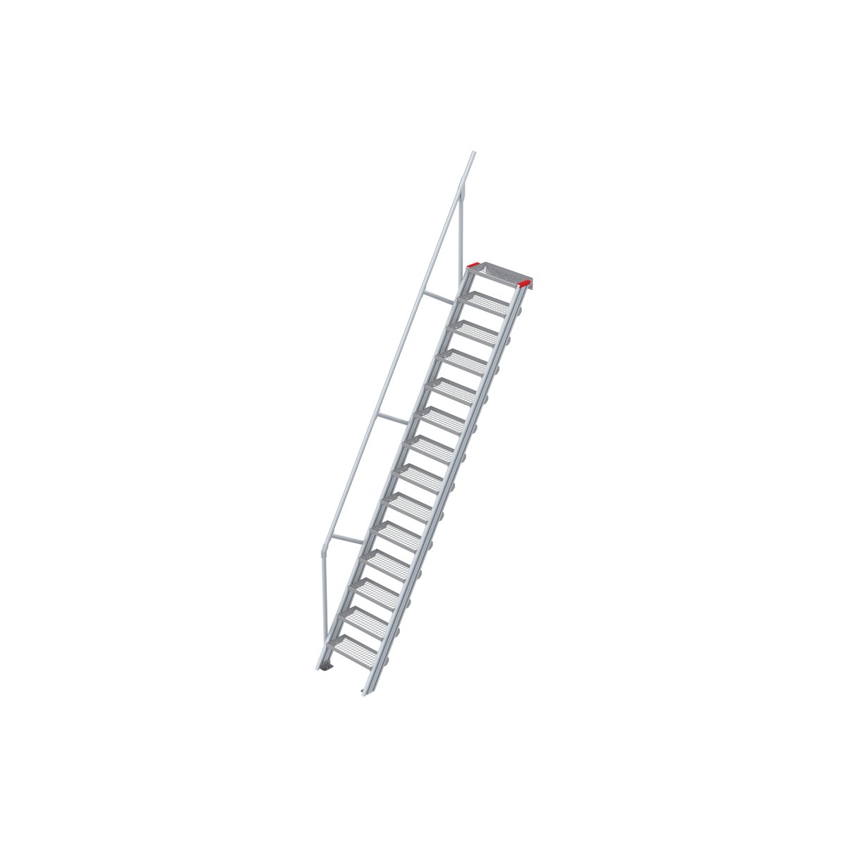 Treppe 60° mit 14 Stufen 600 mm breiteuroline – der sichere AufstiegStahl Gitterrost Treppen für individuelle Lösungen: wetterfest, robust, sehr stabil und belastbar. Für Arbeiten in der Höhe, als Maschinentreppe, zum Erreichen von höher gelegenen Ebenen in Industrie und Handwerk, als Zustieg oder als Bautreppe in der Rohbau- oder Ausbauphase bis zum Einbau der endgültigen Treppe. Die hervorragend verarbeitete Steigtechnik Produktserie vereint Sicherheit und Flexibilität. Die verschiedenen Steigungswinkel; 45° für einen bequemen Aufstieg, 60° für beengte Platzverhältnisse, 3 Standard-Stufenbreiten (600 mm, 800 mm, 1000 mm) finden Sie in unseren Empfehlungen verlinkt. Als Standard – Stufenausführungen haben Sie die Wahl zwischen Stufen in Alu-gerieft oder Stahl-Gitterroststufen. Gitterrost bietet den Vorteil, dass Schmutz und Flüssigkeiten, wie Regenwasser einfacher entweichen können. …