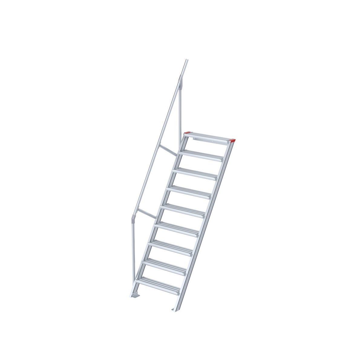 Treppe 60° mit 9 Stufen 800 mm breiteuroline – der sichere Aufstieg Alutreppen für individuelle Lösungen: Leicht, robust, sehr stabil und belastbar. Für Arbeiten in der Höhe, als Maschinentreppe, zum Erreichen von höher gelegenen Ebenen in Industrie und Handwerk, als Zustieg oder als Bautreppe in der Rohbau- oder Ausbauphase bis zum Einbau der endgültigen Treppe.Die hervorragend verarbeitete Steigtechnik Produktserie vereint Sicherheit und Flexibilität. Die verschiedenen Steigungswinkel; 45° für einen bequemen Aufstieg, 60° für beengte Platzverhältnisse, 3 Standard-Stufenbreiten (600 mm, 800 mm, 1000 mm) finden Sie in unseren Empfehlungen verlinkt. Als Standard – Stufenausführungen haben Sie die Wahl zwischen Stufen in Alu-gerieft oder Stahl-Gitterroststufen. Auf Wunsch bieten wir Ihnen auch gerne abweichende Stufenausführungen an: Alu-Gitterrost, Alu-Lochblech oder Stahl-Lochble…