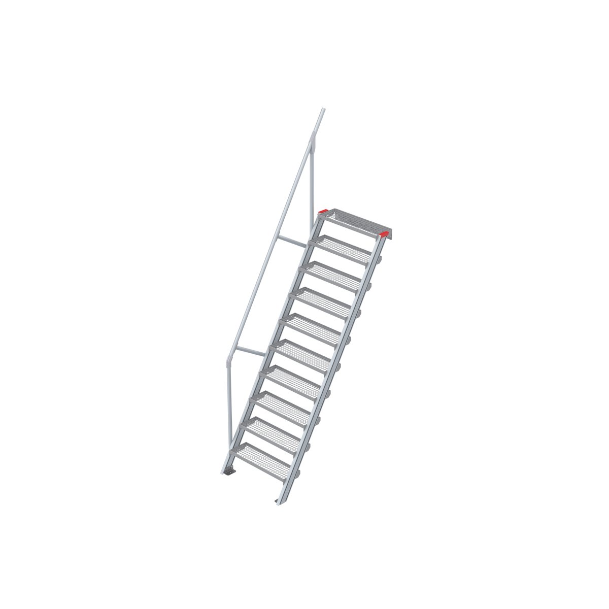 Treppe 60° mit 10 Stufen 800 mm breiteuroline – der sichere AufstiegStahl Gitterrost Treppen für individuelle Lösungen: wetterfest, robust, sehr stabil und belastbar. Für Arbeiten in der Höhe, als Maschinentreppe, zum Erreichen von höher gelegenen Ebenen in Industrie und Handwerk, als Zustieg oder als Bautreppe in der Rohbau- oder Ausbauphase bis zum Einbau der endgültigen Treppe. Die hervorragend verarbeitete Steigtechnik Produktserie vereint Sicherheit und Flexibilität. Die verschiedenen Steigungswinkel; 45° für einen bequemen Aufstieg, 60° für beengte Platzverhältnisse, 3 Standard-Stufenbreiten (600 mm, 800 mm, 1000 mm) finden Sie in unseren Empfehlungen verlinkt. Als Standard – Stufenausführungen haben Sie die Wahl zwischen Stufen in Alu-gerieft oder Stahl-Gitterroststufen. Gitterrost bietet den Vorteil, dass Schmutz und Flüssigkeiten, wie Regenwasser einfacher entweichen können. …