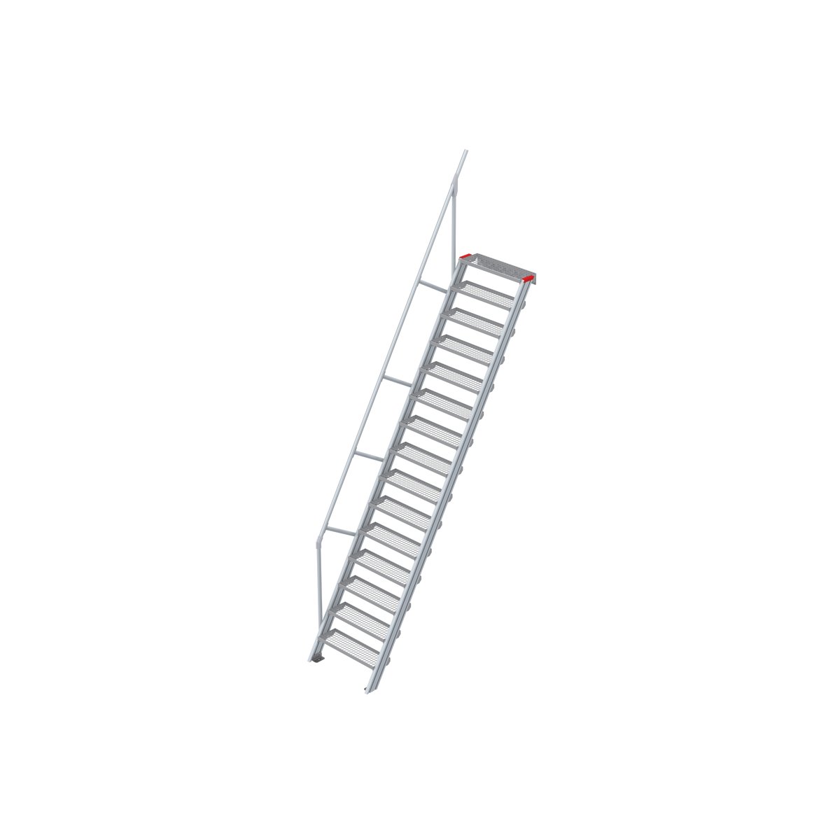 Treppe 60° mit 15 Stufen 800 mm breiteuroline – der sichere AufstiegStahl Gitterrost Treppen für individuelle Lösungen: wetterfest, robust, sehr stabil und belastbar. Für Arbeiten in der Höhe, als Maschinentreppe, zum Erreichen von höher gelegenen Ebenen in Industrie und Handwerk, als Zustieg oder als Bautreppe in der Rohbau- oder Ausbauphase bis zum Einbau der endgültigen Treppe. Die hervorragend verarbeitete Steigtechnik Produktserie vereint Sicherheit und Flexibilität. Die verschiedenen Steigungswinkel; 45° für einen bequemen Aufstieg, 60° für beengte Platzverhältnisse, 3 Standard-Stufenbreiten (600 mm, 800 mm, 1000 mm) finden Sie in unseren Empfehlungen verlinkt. Als Standard – Stufenausführungen haben Sie die Wahl zwischen Stufen in Alu-gerieft oder Stahl-Gitterroststufen. Gitterrost bietet den Vorteil, dass Schmutz und Flüssigkeiten, wie Regenwasser einfacher entweichen können. …