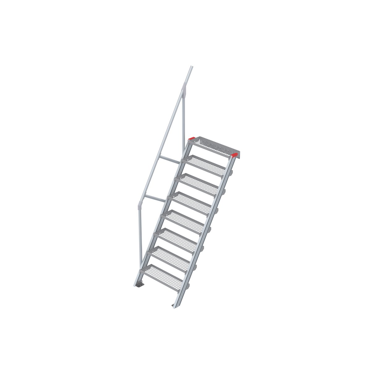 Treppe 60° mit 8 Stufen 800 mm breiteuroline – der sichere AufstiegStahl Gitterrost Treppen für individuelle Lösungen: wetterfest, robust, sehr stabil und belastbar. Für Arbeiten in der Höhe, als Maschinentreppe, zum Erreichen von höher gelegenen Ebenen in Industrie und Handwerk, als Zustieg oder als Bautreppe in der Rohbau- oder Ausbauphase bis zum Einbau der endgültigen Treppe. Die hervorragend verarbeitete Steigtechnik Produktserie vereint Sicherheit und Flexibilität. Die verschiedenen Steigungswinkel; 45° für einen bequemen Aufstieg, 60° für beengte Platzverhältnisse, 3 Standard-Stufenbreiten (600 mm, 800 mm, 1000 mm) finden Sie in unseren Empfehlungen verlinkt. Als Standard – Stufenausführungen haben Sie die Wahl zwischen Stufen in Alu-gerieft oder Stahl-Gitterroststufen. Gitterrost bietet den Vorteil, dass Schmutz und Flüssigkeiten, wie Regenwasser einfacher entweichen können. D…