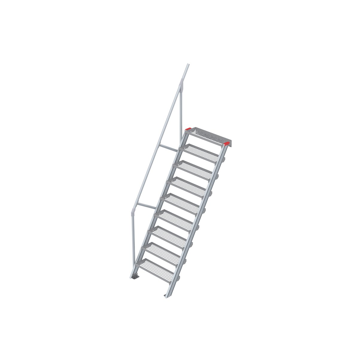 Treppe 60° mit 9 Stufen 800 mm breiteuroline – der sichere AufstiegStahl Gitterrost Treppen für individuelle Lösungen: wetterfest, robust, sehr stabil und belastbar. Für Arbeiten in der Höhe, als Maschinentreppe, zum Erreichen von höher gelegenen Ebenen in Industrie und Handwerk, als Zustieg oder als Bautreppe in der Rohbau- oder Ausbauphase bis zum Einbau der endgültigen Treppe. Die hervorragend verarbeitete Steigtechnik Produktserie vereint Sicherheit und Flexibilität. Die verschiedenen Steigungswinkel; 45° für einen bequemen Aufstieg, 60° für beengte Platzverhältnisse, 3 Standard-Stufenbreiten (600 mm, 800 mm, 1000 mm) finden Sie in unseren Empfehlungen verlinkt. Als Standard – Stufenausführungen haben Sie die Wahl zwischen Stufen in Alu-gerieft oder Stahl-Gitterroststufen. Gitterrost bietet den Vorteil, dass Schmutz und Flüssigkeiten, wie Regenwasser einfacher entweichen können. D…