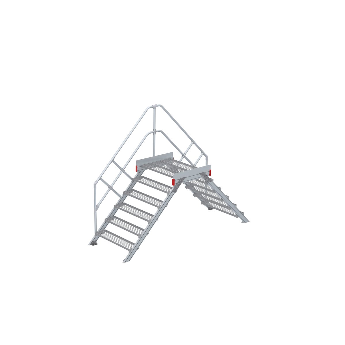 Überstieg 45° mit 6 Stufen 1000 mm breiteuroline – der sichere AufstiegStahl Gitterrost – Übergänge für Hindernisse jeder Art. Zeit ist Geld! Mit diesem Überstieg verkürzen Sie Wege und sorgen trotzdem für eine hohe Arbeitssicherheit. Egal ob Sie Fließbänder, Maschinen oder Behälter überqueren möchten, diese Übergänge sind in der Standardausführung für unterschiedliche örtliche Gegebenheiten in zahlreichen Ausführungen verfügbar. Wetterfest, robust, sehr stabil und belastbar. Die hervorragend verarbeitete Steigtechnik Produktserie mit wählbaren Steigungswinkeln (45° für einen bequemen Aufstieg, 60° für beengte Platzverhältnisse) verschiedene Höhen und 3 Standard Stufenbreiten (600 mm, 800 mm, 1000 mm) vereinen Sicherheit und Flexibilität. Als Standard – Stufenausführungen haben Sie die Wahl zwischen Stufen in Alu-gerieft oder Stahl-Gitterrost. Gitterrost bietet den Vorteil, dass Schmu…
