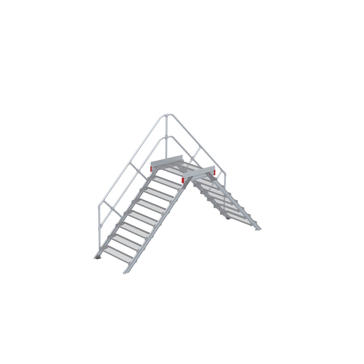 Überstieg 45° mit 8 Stufen 1000 mm breiteuroline – der sichere AufstiegStahl Gitterrost – Übergänge für Hindernisse jeder Art. Zeit ist Geld! Mit diesem Überstieg verkürzen Sie Wege und sorgen trotzdem für eine hohe Arbeitssicherheit. Egal ob Sie Fließbänder, Maschinen oder Behälter überqueren möchten, diese Übergänge sind in der Standardausführung für unterschiedliche örtliche Gegebenheiten in zahlreichen Ausführungen verfügbar. Wetterfest, robust, sehr stabil und belastbar. Die hervorragend verarbeitete Steigtechnik Produktserie mit wählbaren Steigungswinkeln (45° für einen bequemen Aufstieg, 60° für beengte Platzverhältnisse) verschiedene Höhen und 3 Standard Stufenbreiten (600 mm, 800 mm, 1000 mm) vereinen Sicherheit und Flexibilität. Als Standard – Stufenausführungen haben Sie die Wahl zwischen Stufen in Alu-gerieft oder Stahl-Gitterrost. Gitterrost bietet den Vorteil, dass Schmu…