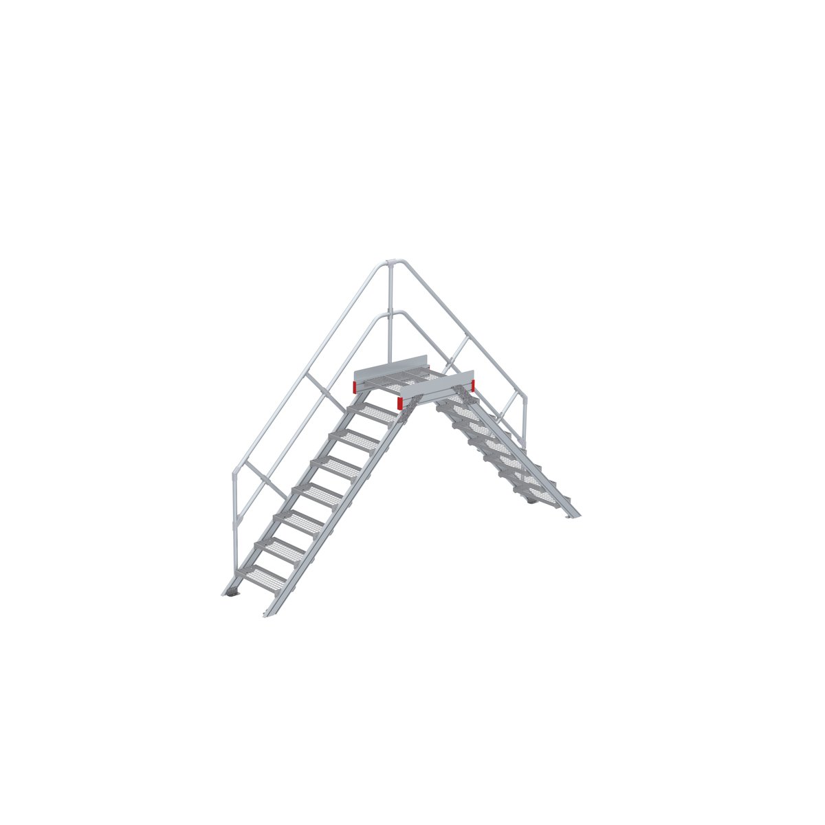 Überstieg 45° mit 8 Stufen 600 mm breiteuroline – der sichere AufstiegStahl Gitterrost – Übergänge für Hindernisse jeder Art. Zeit ist Geld! Mit diesem Überstieg verkürzen Sie Wege und sorgen trotzdem für eine hohe Arbeitssicherheit. Egal ob Sie Fließbänder, Maschinen oder Behälter überqueren möchten, diese Übergänge sind in der Standardausführung für unterschiedliche örtliche Gegebenheiten in zahlreichen Ausführungen verfügbar. Wetterfest, robust, sehr stabil und belastbar. Die hervorragend verarbeitete Steigtechnik Produktserie mit wählbaren Steigungswinkeln (45° für einen bequemen Aufstieg, 60° für beengte Platzverhältnisse) verschiedene Höhen und 3 Standard Stufenbreiten (600 mm, 800 mm, 1000 mm) vereinen Sicherheit und Flexibilität. Als Standard – Stufenausführungen haben Sie die Wahl zwischen Stufen in Alu-gerieft oder Stahl-Gitterrost. Gitterrost bietet den Vorteil, dass Schmut…