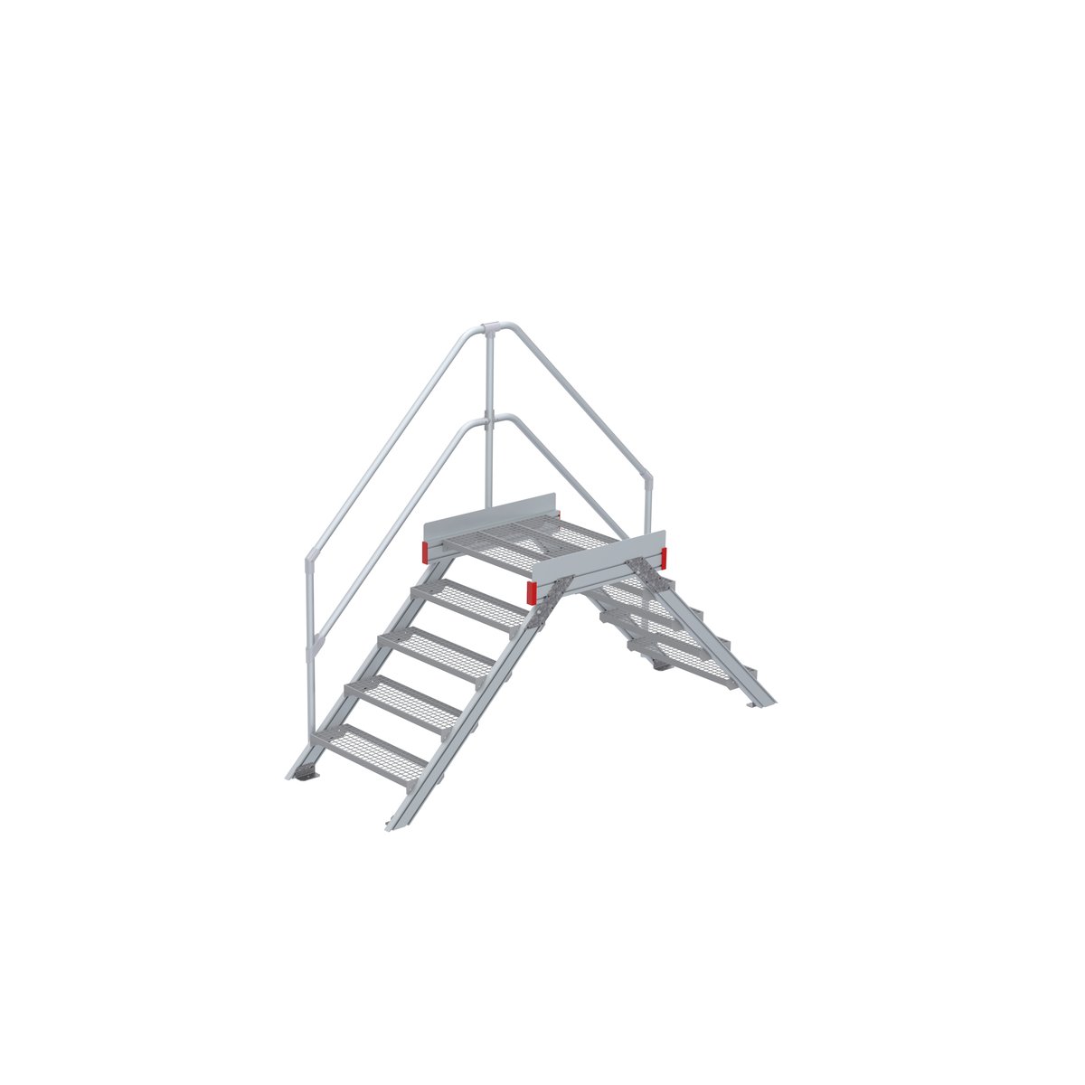 Überstieg 45° mit 5 Stufen 800 mm breiteuroline – der sichere AufstiegStahl Gitterrost – Übergänge für Hindernisse jeder Art. Zeit ist Geld! Mit diesem Überstieg verkürzen Sie Wege und sorgen trotzdem für eine hohe Arbeitssicherheit. Egal ob Sie Fließbänder, Maschinen oder Behälter überqueren möchten, diese Übergänge sind in der Standardausführung für unterschiedliche örtliche Gegebenheiten in zahlreichen Ausführungen verfügbar. Wetterfest, robust, sehr stabil und belastbar. Die hervorragend verarbeitete Steigtechnik Produktserie mit wählbaren Steigungswinkeln (45° für einen bequemen Aufstieg, 60° für beengte Platzverhältnisse) verschiedene Höhen und 3 Standard Stufenbreiten (600 mm, 800 mm, 1000 mm) vereinen Sicherheit und Flexibilität. Als Standard – Stufenausführungen haben Sie die Wahl zwischen Stufen in Alu-gerieft oder Stahl-Gitterrost. Gitterrost bietet den Vorteil, dass Schmut…