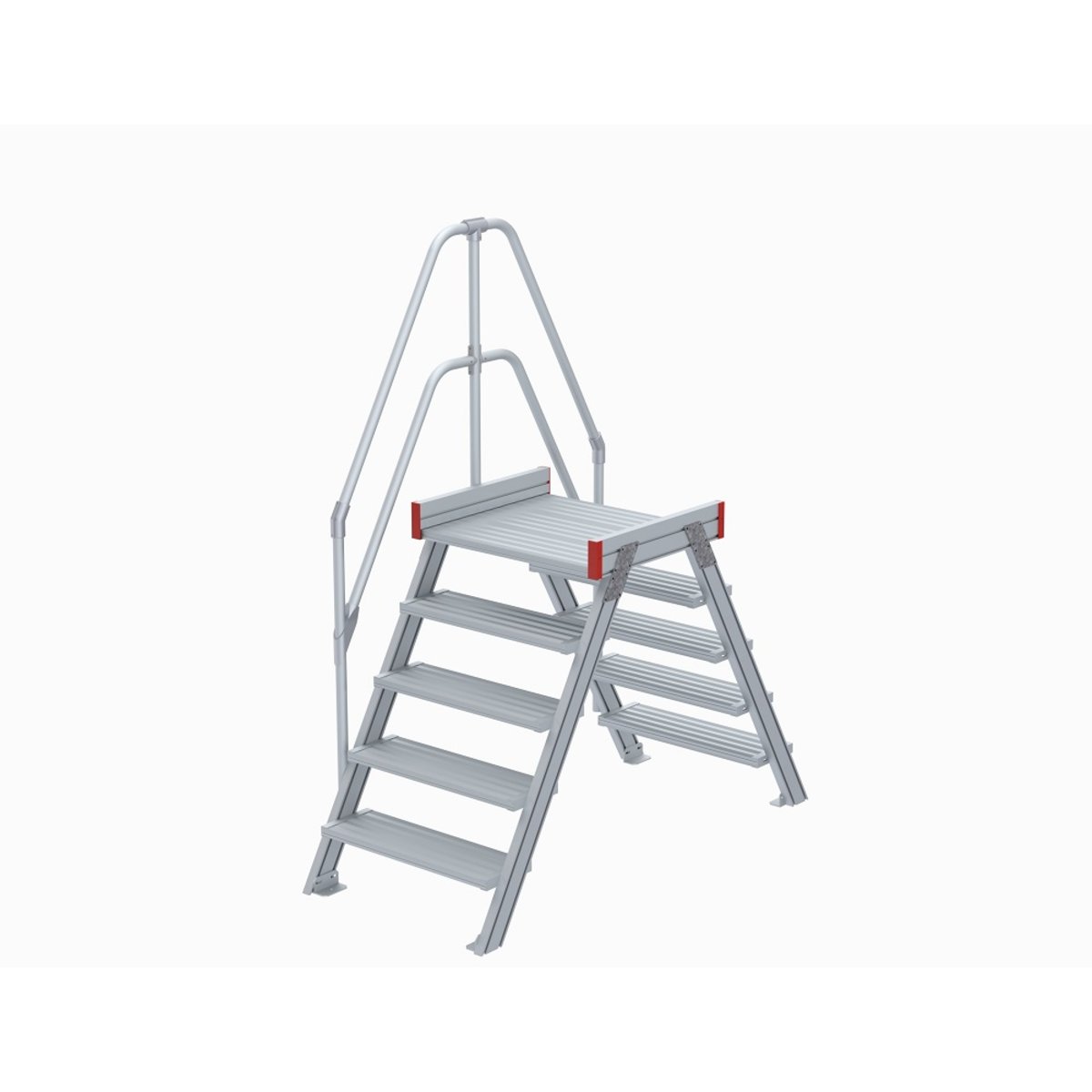 Überstieg 60° mit 5 Stufen 1000 mm breiteuroline – der sichere AufstiegAluminium – Übergänge für Hindernisse jeder Art.Zeit ist Geld! Mit diesen Übergängen verkürzen Sie Wege und sorgen trotzdem für eine hohe Arbeitssicherheit. Egal ob Sie Fließbänder, Maschinen oder Behälter überqueren möchten, diese Übergänge sind in der Standardausführung für unterschiedliche örtliche Gegebenheiten in zahlreichen Ausführungen verfügbar. Leicht, robust, sehr stabil und belastbar. Die hervorragend verarbeitete Steigtechnik Produktserie mit wählbaren Steigungswinkeln (45° für einen bequemen Aufstieg, 60° für beengte Platzverhältnisse) verschiedene Höhen und 3 Standard Stufenbreiten (600 mm, 800 mm, 1000 mm) vereinen Sicherheit und Flexibilität. Auf Wunsch bieten wir Ihnen gerne abweichende Stufenausführungen: Alu-Gitterrost, Alu- Lochblech, Stahl-Gitterrost oder Stahl-Lochblech. Dafür nehmen Sie bitte…