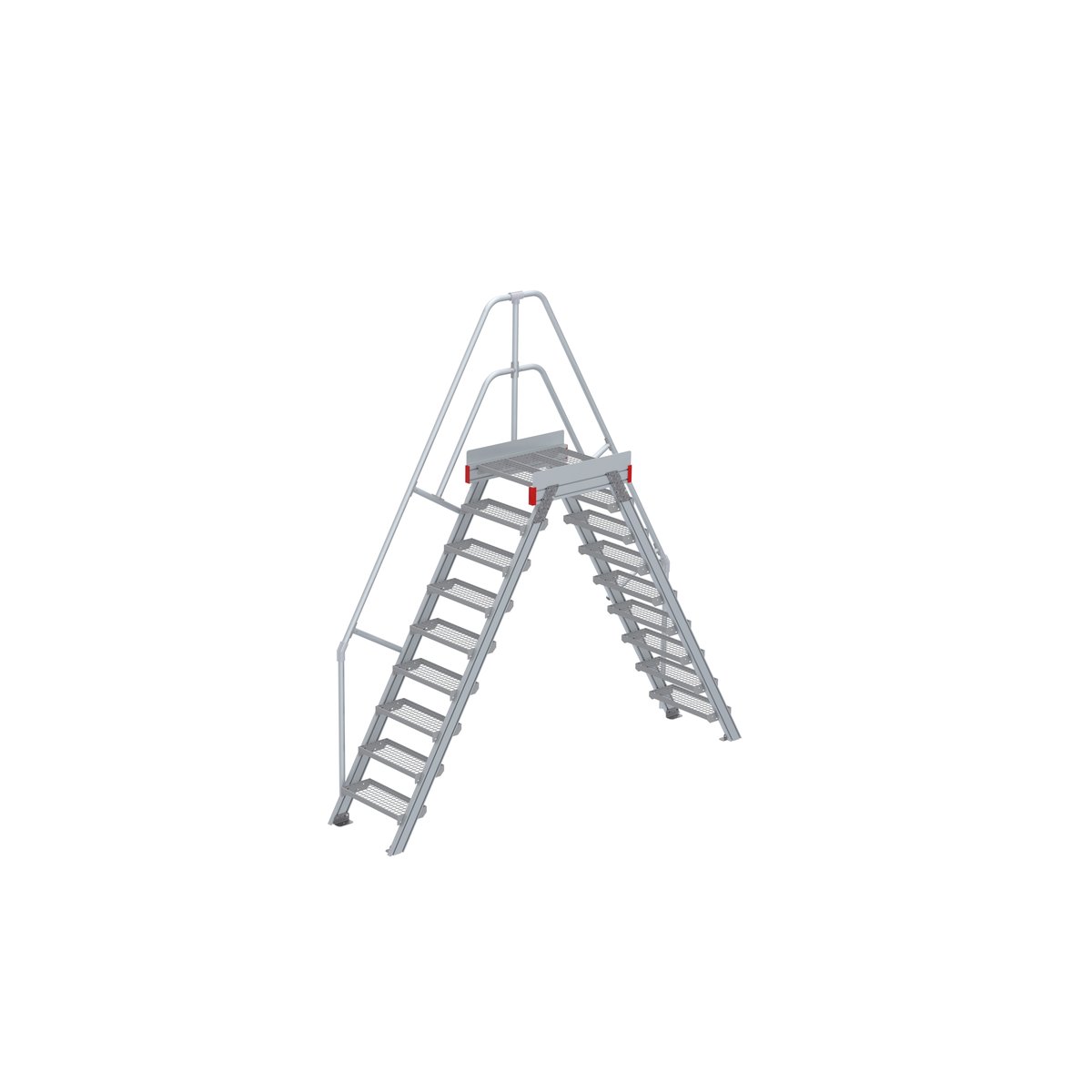 Überstieg 60° mit 9 Stufen 600 mm breiteuroline – der sichere AufstiegStahl Gitterrost – Übergänge für Hindernisse jeder Art. Zeit ist Geld! Mit diesem Überstieg verkürzen Sie Wege und sorgen trotzdem für eine hohe Arbeitssicherheit. Egal ob Sie Fließbänder, Maschinen oder Behälter überqueren möchten, diese Übergänge sind in der Standardausführung für unterschiedliche örtliche Gegebenheiten in zahlreichen Ausführungen verfügbar. Wetterfest, robust, sehr stabil und belastbar. Die hervorragend verarbeitete Steigtechnik Produktserie mit wählbaren Steigungswinkeln (45° für einen bequemen Aufstieg, 60° für beengte Platzverhältnisse) verschiedene Höhen und 3 Standard Stufenbreiten (600 mm, 800 mm, 1000 mm) vereinen Sicherheit und Flexibilität. Als Standard – Stufenausführungen haben Sie die Wahl zwischen Stufen in Alu-gerieft oder Stahl-Gitterrost. Gitterrost bietet den Vorteil, dass Schmut…
