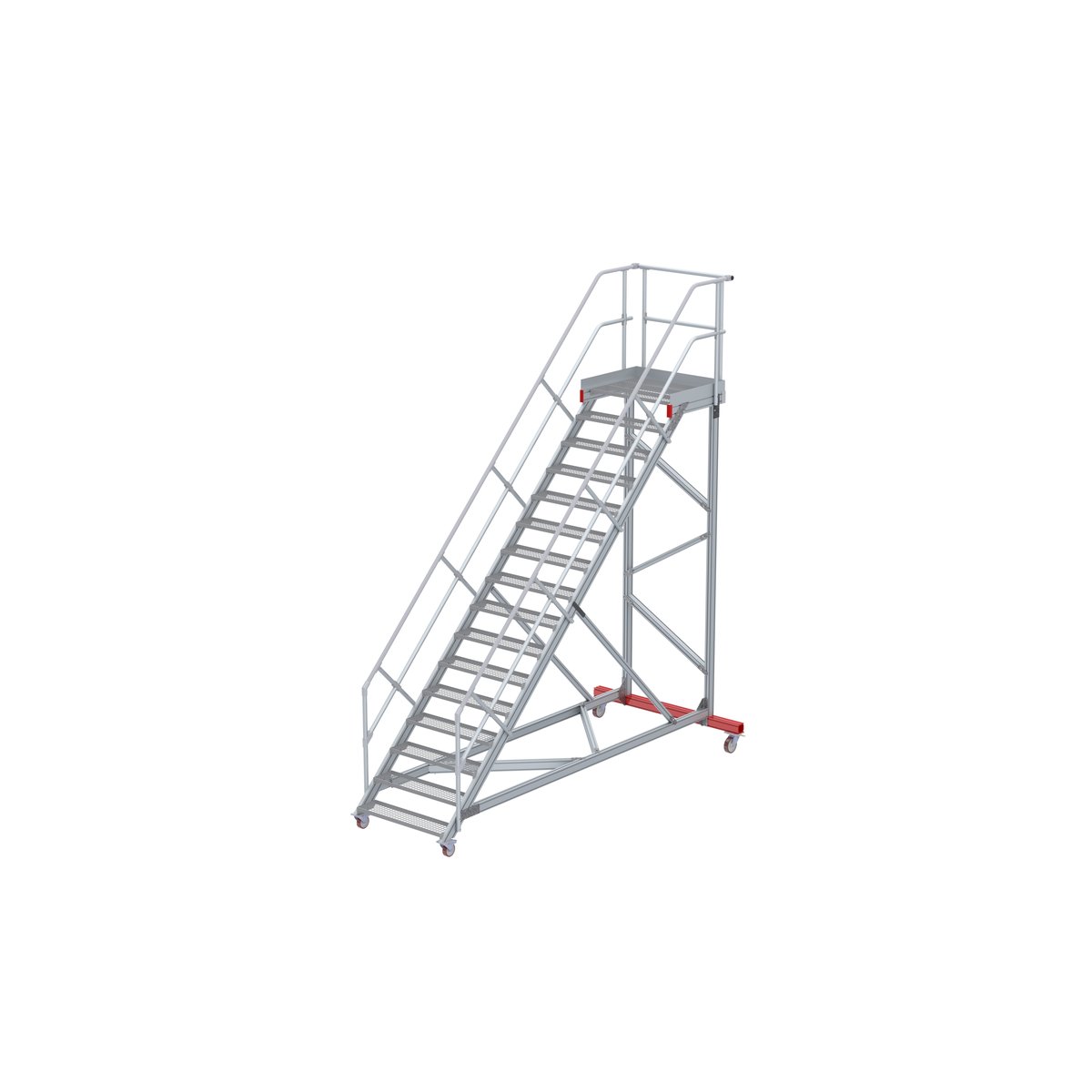 Wartungsbühne 45° mit 16 Stufen 1000 mm breiteuroline – der sichere AufstiegMobile – Wartungsbühnen als sicheres und flexibles Arbeitsmittel. Geeignet für Arbeiten an großen Maschinen, Containern, Nutzfahrzeugen oder Regalen. Durch die leichtgängigen Lenkrollen können die Wartungsbühnen flexibel und einfach an verschiedene Einsatzorte transportiert werden.Diese Wartungsbühnen sind in der Standardausführung für unterschiedliche örtliche Gegebenheiten in zahlreichen Ausführungen verfügbar, welche Sie in unseren Empfehlungen verlinkt finden. Die hervorragend verarbeitete Steigtechnik Produktserie mit wählbaren Steigungswinkeln (45° für einen bequemen Aufstieg, 60° für beengte Platzverhältnisse) verschiedene Höhen und 3 Standard Stufenbreiten (600 mm, 800 mm, 1000 mm), vereinen Sicherheit und Flexibilität. Als Standard – Stufenausführungen haben Sie die Wahl zwischen Stufen in Alu-gerieft…
