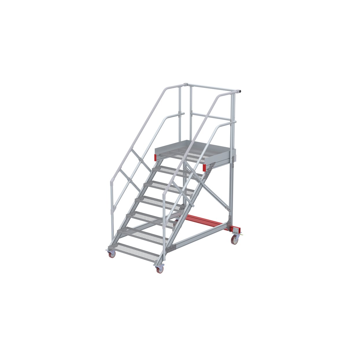 Wartungsbühne 45° mit 7 Stufen 1000 mm breiteuroline – der sichere AufstiegMobile – Wartungsbühnen als sicheres und flexibles Arbeitsmittel. Geeignet für Arbeiten an großen Maschinen, Containern, Nutzfahrzeugen oder Regalen. Durch die leichtgängigen Lenkrollen können die Wartungsbühnen flexibel und einfach an verschiedene Einsatzorte transportiert werden.Diese Wartungsbühnen sind in der Standardausführung für unterschiedliche örtliche Gegebenheiten in zahlreichen Ausführungen verfügbar, welche Sie in unseren Empfehlungen verlinkt finden. Die hervorragend verarbeitete Steigtechnik Produktserie mit wählbaren Steigungswinkeln (45° für einen bequemen Aufstieg, 60° für beengte Platzverhältnisse) verschiedene Höhen und 3 Standard Stufenbreiten (600 mm, 800 mm, 1000 mm), vereinen Sicherheit und Flexibilität. Als Standard – Stufenausführungen haben Sie die Wahl zwischen Stufen in Alu-gerieft …