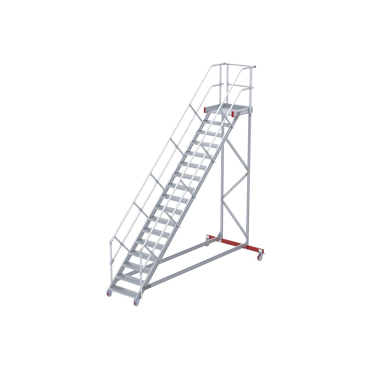 Wartungsbühne 45° mit 17 Stufen 600 mm breiteuroline – der sichere AufstiegMobile Aluminium – Wartungsbühnen als sicheres und flexibles Arbeitsmittel. Geeignet für Arbeiten an großen Maschinen, Containern, Nutzfahrzeugen oder Regalen. Durch die leichtgängigen Lenkrollen können die Wartungsbühnen flexibel und einfach an verschiedene Einsatzorte transportiert werden.Diese Wartungsbühnen sind in der Standardausführung für unterschiedliche örtliche Gegebenheiten in zahlreichen Ausführungen verfügbar, welche Sie in unseren Empfehlungen verlinkt finden. Die hervorragend verarbeitete Steigtechnik Produktserie mit wählbaren Steigungswinkeln (45° für einen bequemen Aufstieg, 60° für beengte Platzverhältnisse) verschiedene Höhen und 3 Standard Stufenbreiten (600 mm, 800 mm, 1000 mm), vereinen Sicherheit und Flexibilität. Als Standard – Stufenausführungen haben Sie die Wahl zwischen Stufen in Al…