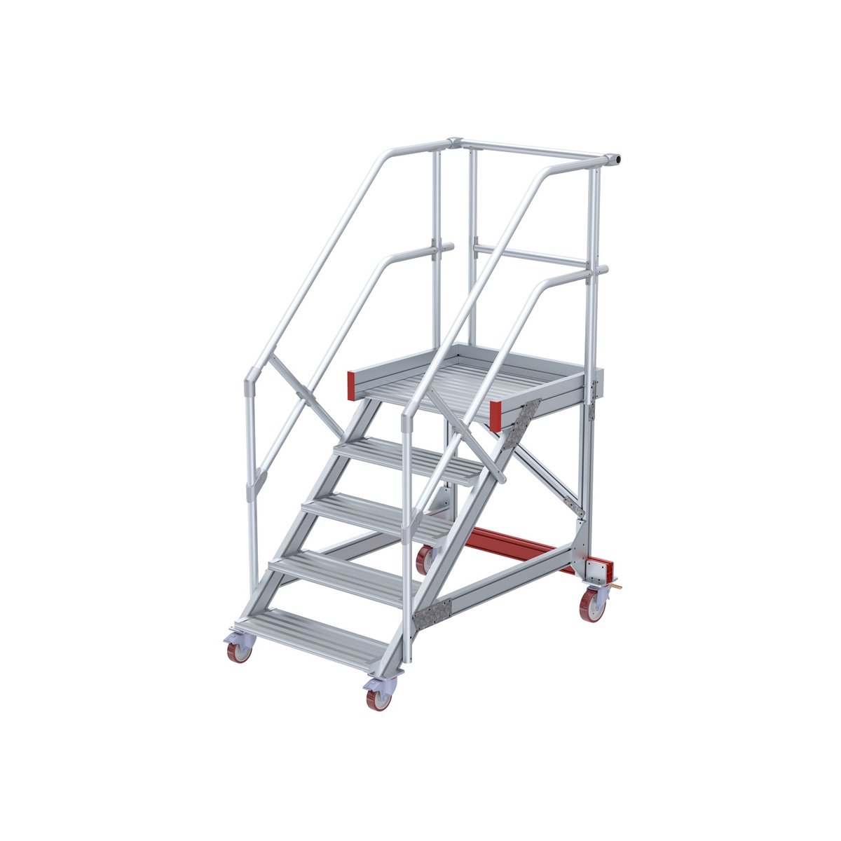 Wartungsbühne 45° mit 5 Stufen 600 mm breiteuroline – der sichere AufstiegMobile Aluminium – Wartungsbühnen als sicheres und flexibles Arbeitsmittel. Geeignet für Arbeiten an großen Maschinen, Containern, Nutzfahrzeugen oder Regalen. Durch die leichtgängigen Lenkrollen können die Wartungsbühnen flexibel und einfach an verschiedene Einsatzorte transportiert werden.Diese Wartungsbühnen sind in der Standardausführung für unterschiedliche örtliche Gegebenheiten in zahlreichen Ausführungen verfügbar, welche Sie in unseren Empfehlungen verlinkt finden. Die hervorragend verarbeitete Steigtechnik Produktserie mit wählbaren Steigungswinkeln (45° für einen bequemen Aufstieg, 60° für beengte Platzverhältnisse) verschiedene Höhen und 3 Standard Stufenbreiten (600 mm, 800 mm, 1000 mm), vereinen Sicherheit und Flexibilität. Als Standard – Stufenausführungen haben Sie die Wahl zwischen Stufen in Alu…