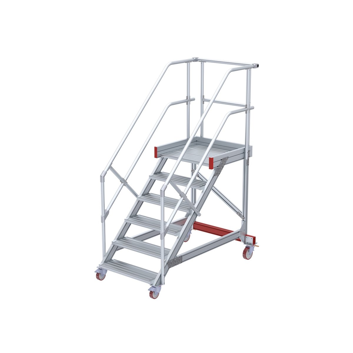 Wartungsbühne 45° mit 6 Stufen 600 mm breiteuroline – der sichere AufstiegMobile Aluminium – Wartungsbühnen als sicheres und flexibles Arbeitsmittel. Geeignet für Arbeiten an großen Maschinen, Containern, Nutzfahrzeugen oder Regalen. Durch die leichtgängigen Lenkrollen können die Wartungsbühnen flexibel und einfach an verschiedene Einsatzorte transportiert werden.Diese Wartungsbühnen sind in der Standardausführung für unterschiedliche örtliche Gegebenheiten in zahlreichen Ausführungen verfügbar, welche Sie in unseren Empfehlungen verlinkt finden. Die hervorragend verarbeitete Steigtechnik Produktserie mit wählbaren Steigungswinkeln (45° für einen bequemen Aufstieg, 60° für beengte Platzverhältnisse) verschiedene Höhen und 3 Standard Stufenbreiten (600 mm, 800 mm, 1000 mm), vereinen Sicherheit und Flexibilität. Als Standard – Stufenausführungen haben Sie die Wahl zwischen Stufen in Alu…