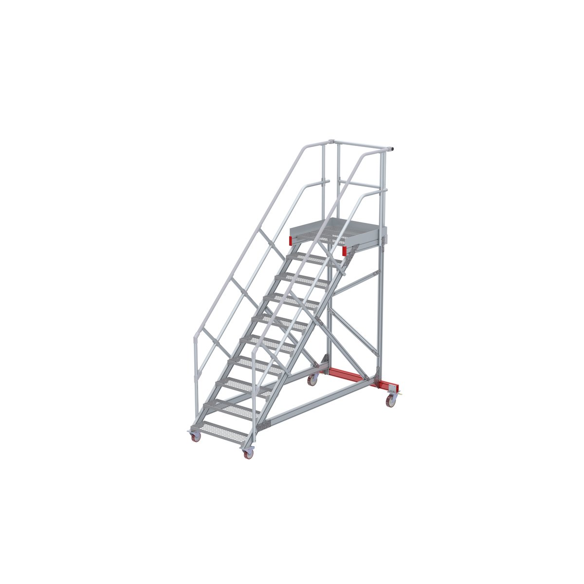 Wartungsbühne 45° mit 10 Stufen 800 mm breiteuroline – der sichere AufstiegMobile – Wartungsbühnen als sicheres und flexibles Arbeitsmittel. Geeignet für Arbeiten an großen Maschinen, Containern, Nutzfahrzeugen oder Regalen. Durch die leichtgängigen Lenkrollen können die Wartungsbühnen flexibel und einfach an verschiedene Einsatzorte transportiert werden.Diese Wartungsbühnen sind in der Standardausführung für unterschiedliche örtliche Gegebenheiten in zahlreichen Ausführungen verfügbar, welche Sie in unseren Empfehlungen verlinkt finden. Die hervorragend verarbeitete Steigtechnik Produktserie mit wählbaren Steigungswinkeln (45° für einen bequemen Aufstieg, 60° für beengte Platzverhältnisse) verschiedene Höhen und 3 Standard Stufenbreiten (600 mm, 800 mm, 1000 mm), vereinen Sicherheit und Flexibilität. Als Standard – Stufenausführungen haben Sie die Wahl zwischen Stufen in Alu-gerieft …