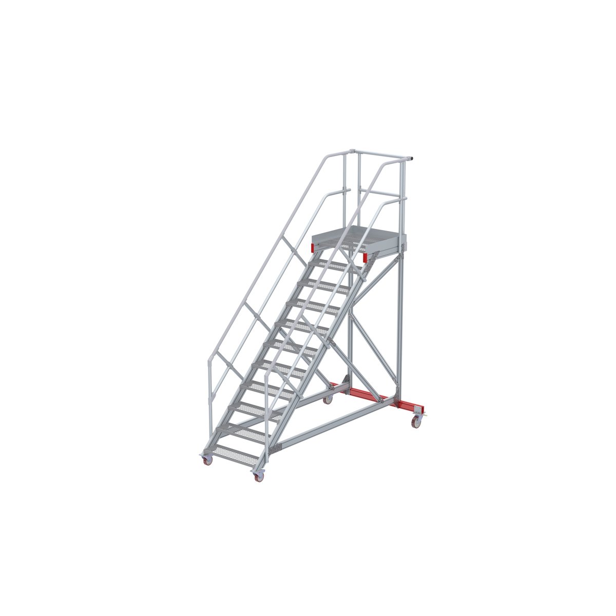 Wartungsbühne 45° mit 11 Stufen 800 mm breiteuroline – der sichere AufstiegMobile – Wartungsbühnen als sicheres und flexibles Arbeitsmittel. Geeignet für Arbeiten an großen Maschinen, Containern, Nutzfahrzeugen oder Regalen. Durch die leichtgängigen Lenkrollen können die Wartungsbühnen flexibel und einfach an verschiedene Einsatzorte transportiert werden.Diese Wartungsbühnen sind in der Standardausführung für unterschiedliche örtliche Gegebenheiten in zahlreichen Ausführungen verfügbar, welche Sie in unseren Empfehlungen verlinkt finden. Die hervorragend verarbeitete Steigtechnik Produktserie mit wählbaren Steigungswinkeln (45° für einen bequemen Aufstieg, 60° für beengte Platzverhältnisse) verschiedene Höhen und 3 Standard Stufenbreiten (600 mm, 800 mm, 1000 mm), vereinen Sicherheit und Flexibilität. Als Standard – Stufenausführungen haben Sie die Wahl zwischen Stufen in Alu-gerieft …