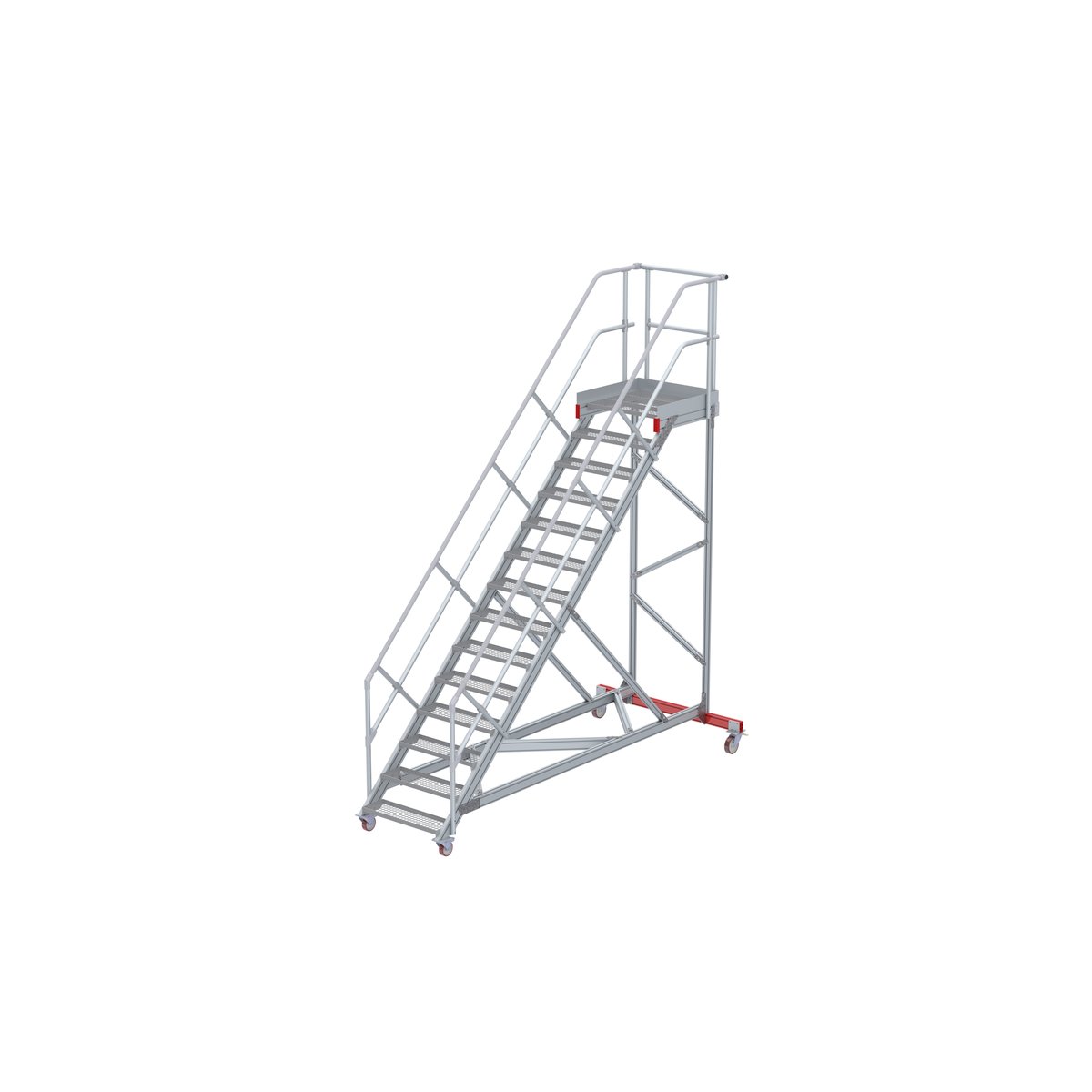 Wartungsbühne 45° mit 14 Stufen 800 mm breiteuroline – der sichere AufstiegMobile – Wartungsbühnen als sicheres und flexibles Arbeitsmittel. Geeignet für Arbeiten an großen Maschinen, Containern, Nutzfahrzeugen oder Regalen. Durch die leichtgängigen Lenkrollen können die Wartungsbühnen flexibel und einfach an verschiedene Einsatzorte transportiert werden.Diese Wartungsbühnen sind in der Standardausführung für unterschiedliche örtliche Gegebenheiten in zahlreichen Ausführungen verfügbar, welche Sie in unseren Empfehlungen verlinkt finden. Die hervorragend verarbeitete Steigtechnik Produktserie mit wählbaren Steigungswinkeln (45° für einen bequemen Aufstieg, 60° für beengte Platzverhältnisse) verschiedene Höhen und 3 Standard Stufenbreiten (600 mm, 800 mm, 1000 mm), vereinen Sicherheit und Flexibilität. Als Standard – Stufenausführungen haben Sie die Wahl zwischen Stufen in Alu-gerieft …