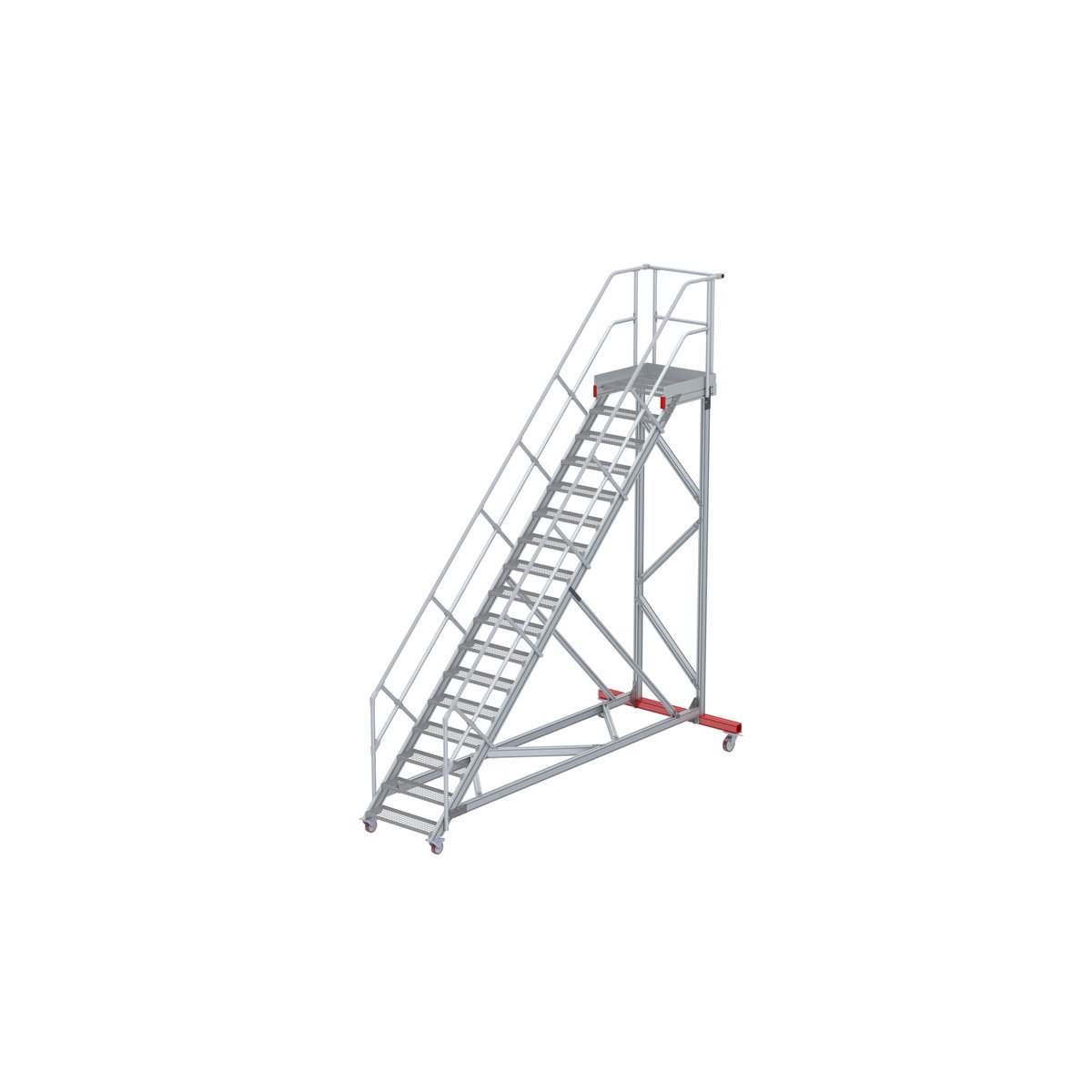 Wartungsbühne 45° mit 17 Stufen 800 mm breiteuroline – der sichere AufstiegMobile – Wartungsbühnen als sicheres und flexibles Arbeitsmittel. Geeignet für Arbeiten an großen Maschinen, Containern, Nutzfahrzeugen oder Regalen. Durch die leichtgängigen Lenkrollen können die Wartungsbühnen flexibel und einfach an verschiedene Einsatzorte transportiert werden.Diese Wartungsbühnen sind in der Standardausführung für unterschiedliche örtliche Gegebenheiten in zahlreichen Ausführungen verfügbar, welche Sie in unseren Empfehlungen verlinkt finden. Die hervorragend verarbeitete Steigtechnik Produktserie mit wählbaren Steigungswinkeln (45° für einen bequemen Aufstieg, 60° für beengte Platzverhältnisse) verschiedene Höhen und 3 Standard Stufenbreiten (600 mm, 800 mm, 1000 mm), vereinen Sicherheit und Flexibilität. Als Standard – Stufenausführungen haben Sie die Wahl zwischen Stufen in Alu-gerieft …
