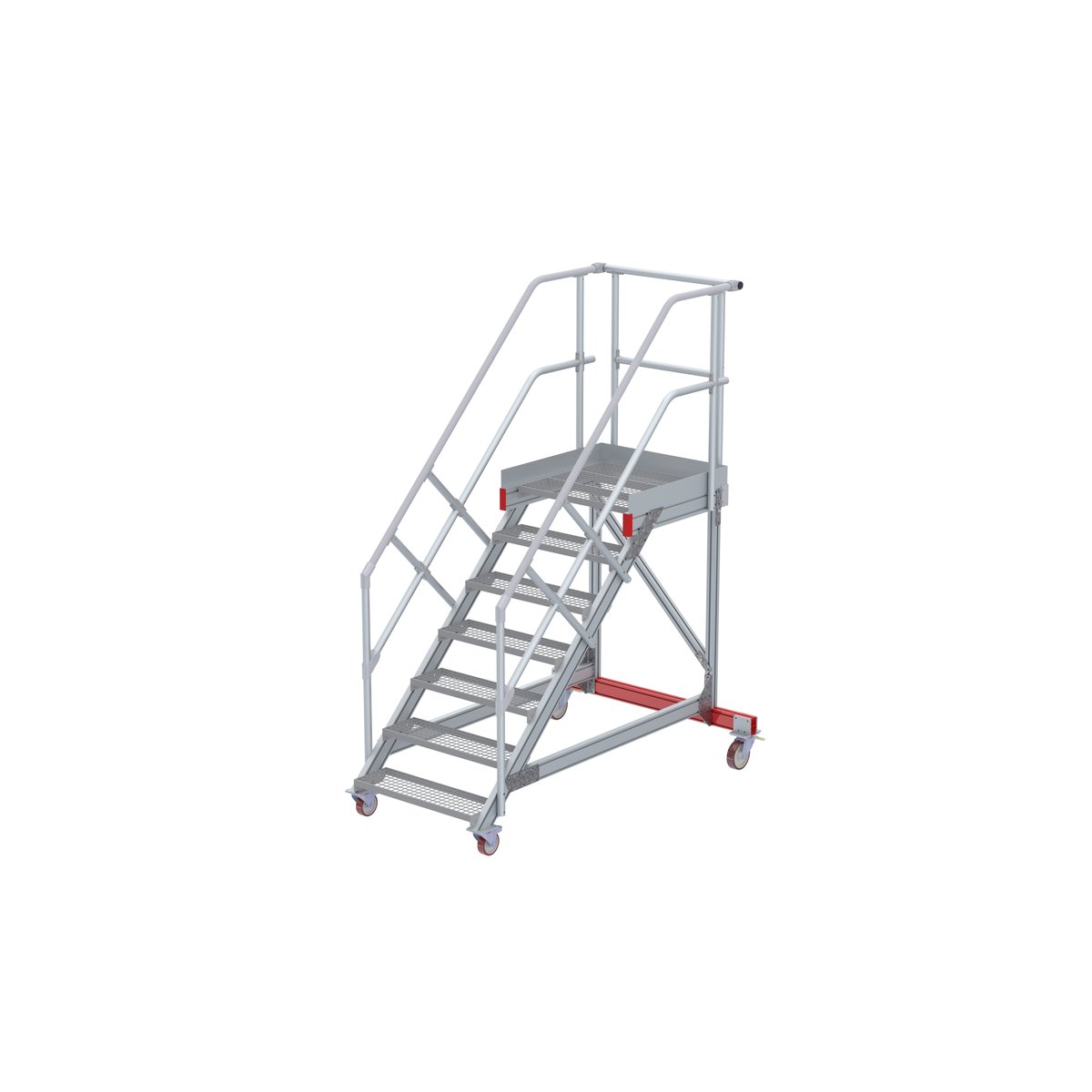 Wartungsbühne 45° mit 7 Stufen 800 mm breiteuroline – der sichere AufstiegMobile – Wartungsbühnen als sicheres und flexibles Arbeitsmittel. Geeignet für Arbeiten an großen Maschinen, Containern, Nutzfahrzeugen oder Regalen. Durch die leichtgängigen Lenkrollen können die Wartungsbühnen flexibel und einfach an verschiedene Einsatzorte transportiert werden.Diese Wartungsbühnen sind in der Standardausführung für unterschiedliche örtliche Gegebenheiten in zahlreichen Ausführungen verfügbar, welche Sie in unseren Empfehlungen verlinkt finden. Die hervorragend verarbeitete Steigtechnik Produktserie mit wählbaren Steigungswinkeln (45° für einen bequemen Aufstieg, 60° für beengte Platzverhältnisse) verschiedene Höhen und 3 Standard Stufenbreiten (600 mm, 800 mm, 1000 mm), vereinen Sicherheit und Flexibilität. Als Standard – Stufenausführungen haben Sie die Wahl zwischen Stufen in Alu-gerieft o…