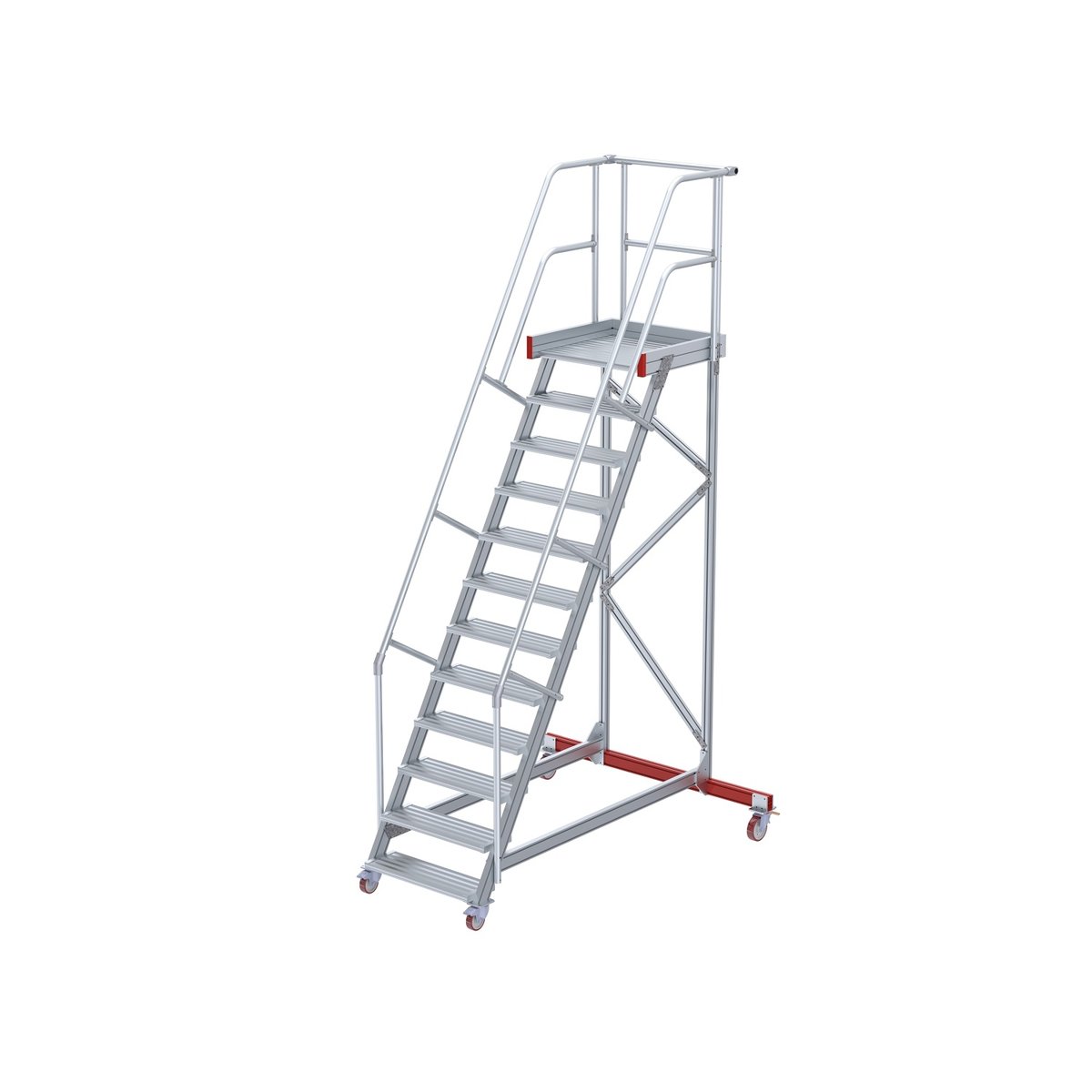Wartungsbühne 60° mit 13 Stufen 1000 mm breiteuroline – der sichere AufstiegMobile Aluminium – Wartungsbühnen als sicheres und flexibles Arbeitsmittel. Geeignet für Arbeiten an großen Maschinen, Containern, Nutzfahrzeugen oder Regalen. Durch die leichtgängigen Lenkrollen können die Wartungsbühnen flexibel und einfach an verschiedene Einsatzorte transportiert werden.Diese Wartungsbühnen sind in der Standardausführung für unterschiedliche örtliche Gegebenheiten in zahlreichen Ausführungen verfügbar, welche Sie in unseren Empfehlungen verlinkt finden. Die hervorragend verarbeitete Steigtechnik Produktserie mit wählbaren Steigungswinkeln (45° für einen bequemen Aufstieg, 60° für beengte Platzverhältnisse) verschiedene Höhen und 3 Standard Stufenbreiten (600 mm, 800 mm, 1000 mm), vereinen Sicherheit und Flexibilität. Als Standard – Stufenausführungen haben Sie die Wahl zwischen Stufen in A…