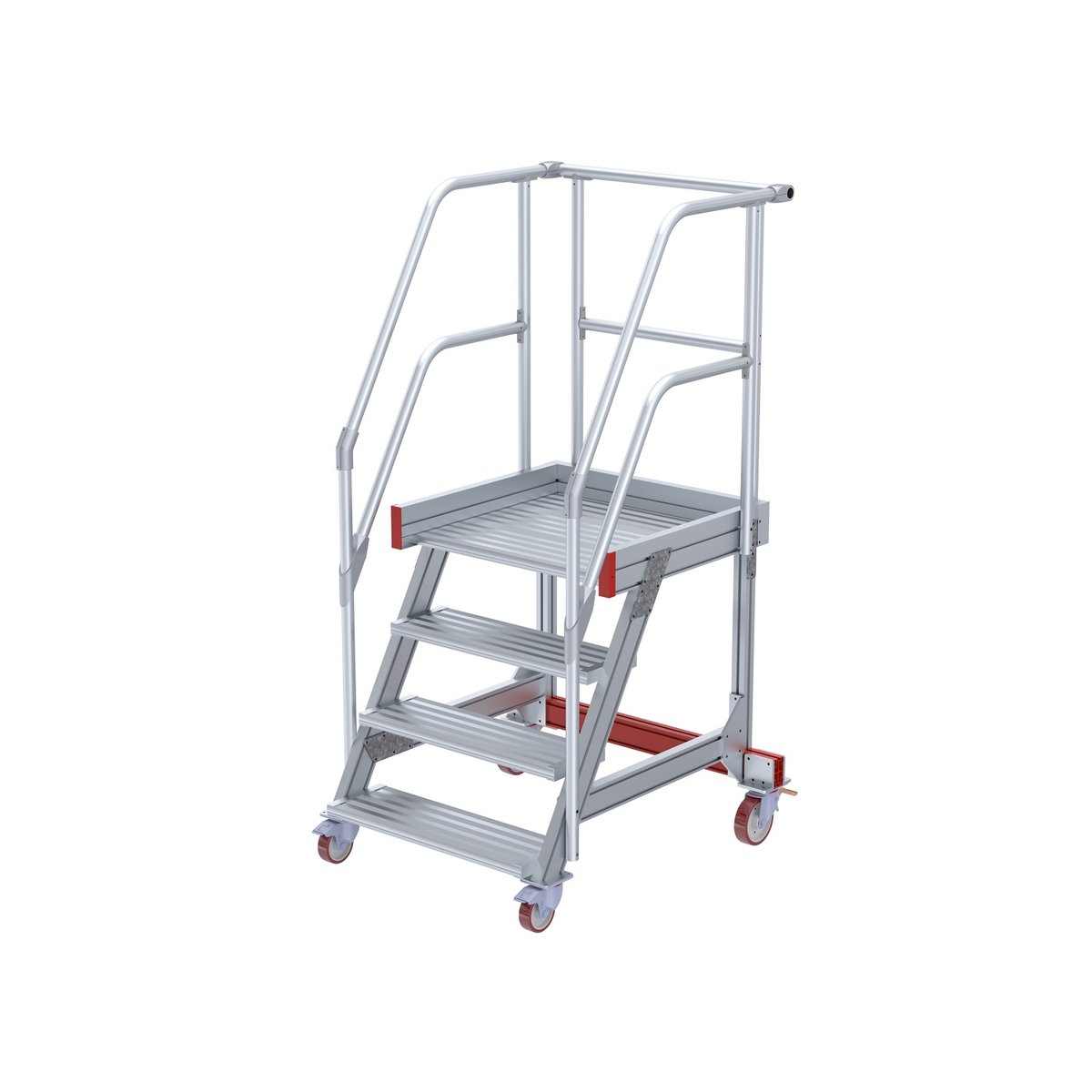 Wartungsbühne 60° mit 4 Stufen 1000 mm breiteuroline – der sichere AufstiegMobile Aluminium – Wartungsbühnen als sicheres und flexibles Arbeitsmittel. Geeignet für Arbeiten an großen Maschinen, Containern, Nutzfahrzeugen oder Regalen. Durch die leichtgängigen Lenkrollen können die Wartungsbühnen flexibel und einfach an verschiedene Einsatzorte transportiert werden.Diese Wartungsbühnen sind in der Standardausführung für unterschiedliche örtliche Gegebenheiten in zahlreichen Ausführungen verfügbar, welche Sie in unseren Empfehlungen verlinkt finden. Die hervorragend verarbeitete Steigtechnik Produktserie mit wählbaren Steigungswinkeln (45° für einen bequemen Aufstieg, 60° für beengte Platzverhältnisse) verschiedene Höhen und 3 Standard Stufenbreiten (600 mm, 800 mm, 1000 mm), vereinen Sicherheit und Flexibilität. Als Standard – Stufenausführungen haben Sie die Wahl zwischen Stufen in Al…