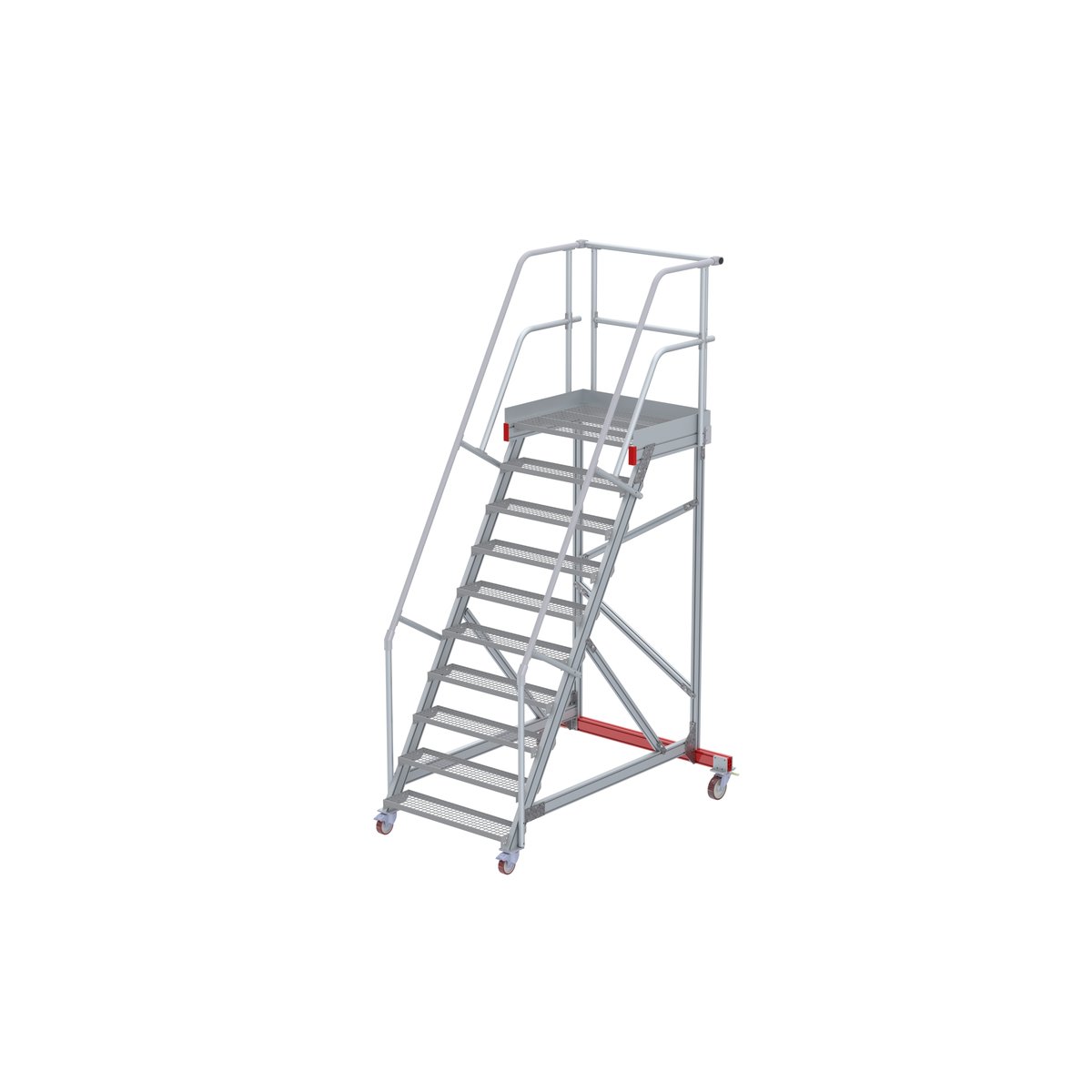 Wartungsbühne 60° mit 10 Stufen 1000 mm breiteuroline – der sichere AufstiegMobile – Wartungsbühnen als sicheres und flexibles Arbeitsmittel. Geeignet für Arbeiten an großen Maschinen, Containern, Nutzfahrzeugen oder Regalen. Durch die leichtgängigen Lenkrollen können die Wartungsbühnen flexibel und einfach an verschiedene Einsatzorte transportiert werden.Diese Wartungsbühnen sind in der Standardausführung für unterschiedliche örtliche Gegebenheiten in zahlreichen Ausführungen verfügbar, welche Sie in unseren Empfehlungen verlinkt finden. Die hervorragend verarbeitete Steigtechnik Produktserie mit wählbaren Steigungswinkeln (45° für einen bequemen Aufstieg, 60° für beengte Platzverhältnisse) verschiedene Höhen und 3 Standard Stufenbreiten (600 mm, 800 mm, 1000 mm), vereinen Sicherheit und Flexibilität. Als Standard – Stufenausführungen haben Sie die Wahl zwischen Stufen in Alu-gerieft…