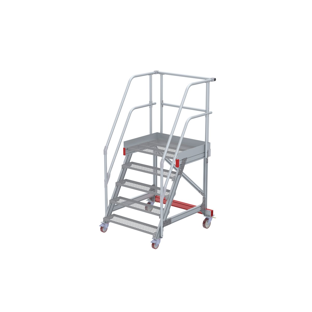 Wartungsbühne 60° mit 5 Stufen 1000 mm breiteuroline – der sichere AufstiegMobile – Wartungsbühnen als sicheres und flexibles Arbeitsmittel. Geeignet für Arbeiten an großen Maschinen, Containern, Nutzfahrzeugen oder Regalen. Durch die leichtgängigen Lenkrollen können die Wartungsbühnen flexibel und einfach an verschiedene Einsatzorte transportiert werden.Diese Wartungsbühnen sind in der Standardausführung für unterschiedliche örtliche Gegebenheiten in zahlreichen Ausführungen verfügbar, welche Sie in unseren Empfehlungen verlinkt finden. Die hervorragend verarbeitete Steigtechnik Produktserie mit wählbaren Steigungswinkeln (45° für einen bequemen Aufstieg, 60° für beengte Platzverhältnisse) verschiedene Höhen und 3 Standard Stufenbreiten (600 mm, 800 mm, 1000 mm), vereinen Sicherheit und Flexibilität. Als Standard – Stufenausführungen haben Sie die Wahl zwischen Stufen in Alu-gerieft …