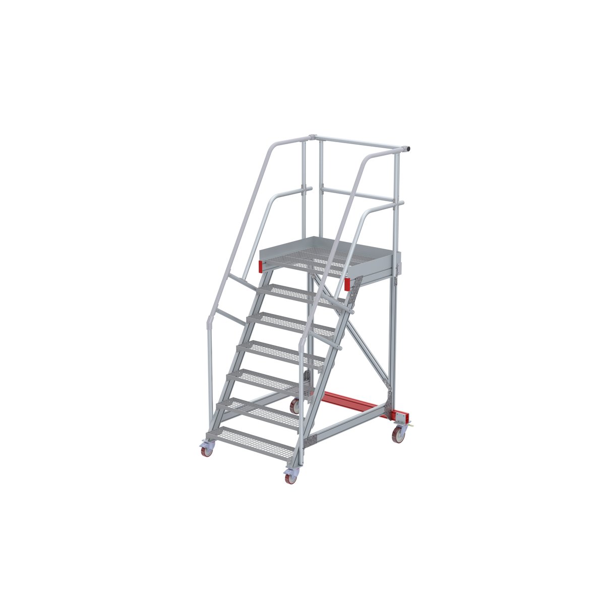 Wartungsbühne 60° mit 7 Stufen 1000 mm breiteuroline – der sichere AufstiegMobile – Wartungsbühnen als sicheres und flexibles Arbeitsmittel. Geeignet für Arbeiten an großen Maschinen, Containern, Nutzfahrzeugen oder Regalen. Durch die leichtgängigen Lenkrollen können die Wartungsbühnen flexibel und einfach an verschiedene Einsatzorte transportiert werden.Diese Wartungsbühnen sind in der Standardausführung für unterschiedliche örtliche Gegebenheiten in zahlreichen Ausführungen verfügbar, welche Sie in unseren Empfehlungen verlinkt finden. Die hervorragend verarbeitete Steigtechnik Produktserie mit wählbaren Steigungswinkeln (45° für einen bequemen Aufstieg, 60° für beengte Platzverhältnisse) verschiedene Höhen und 3 Standard Stufenbreiten (600 mm, 800 mm, 1000 mm), vereinen Sicherheit und Flexibilität. Als Standard – Stufenausführungen haben Sie die Wahl zwischen Stufen in Alu-gerieft …