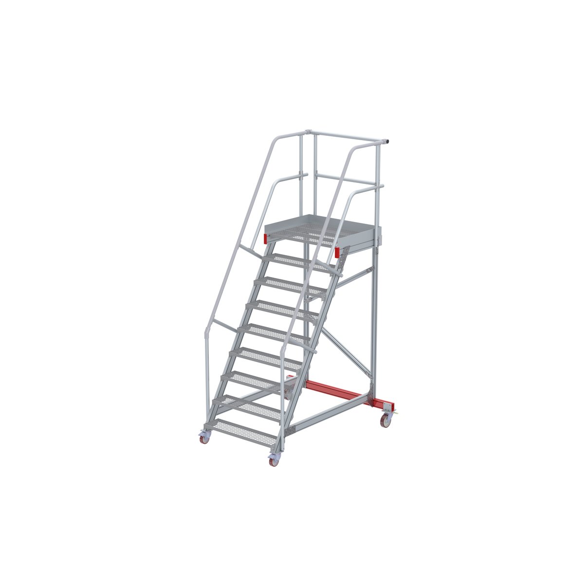 Wartungsbühne 60° mit 9 Stufen 1000 mm breiteuroline – der sichere AufstiegMobile – Wartungsbühnen als sicheres und flexibles Arbeitsmittel. Geeignet für Arbeiten an großen Maschinen, Containern, Nutzfahrzeugen oder Regalen. Durch die leichtgängigen Lenkrollen können die Wartungsbühnen flexibel und einfach an verschiedene Einsatzorte transportiert werden.Diese Wartungsbühnen sind in der Standardausführung für unterschiedliche örtliche Gegebenheiten in zahlreichen Ausführungen verfügbar, welche Sie in unseren Empfehlungen verlinkt finden. Die hervorragend verarbeitete Steigtechnik Produktserie mit wählbaren Steigungswinkeln (45° für einen bequemen Aufstieg, 60° für beengte Platzverhältnisse) verschiedene Höhen und 3 Standard Stufenbreiten (600 mm, 800 mm, 1000 mm), vereinen Sicherheit und Flexibilität. Als Standard – Stufenausführungen haben Sie die Wahl zwischen Stufen in Alu-gerieft …