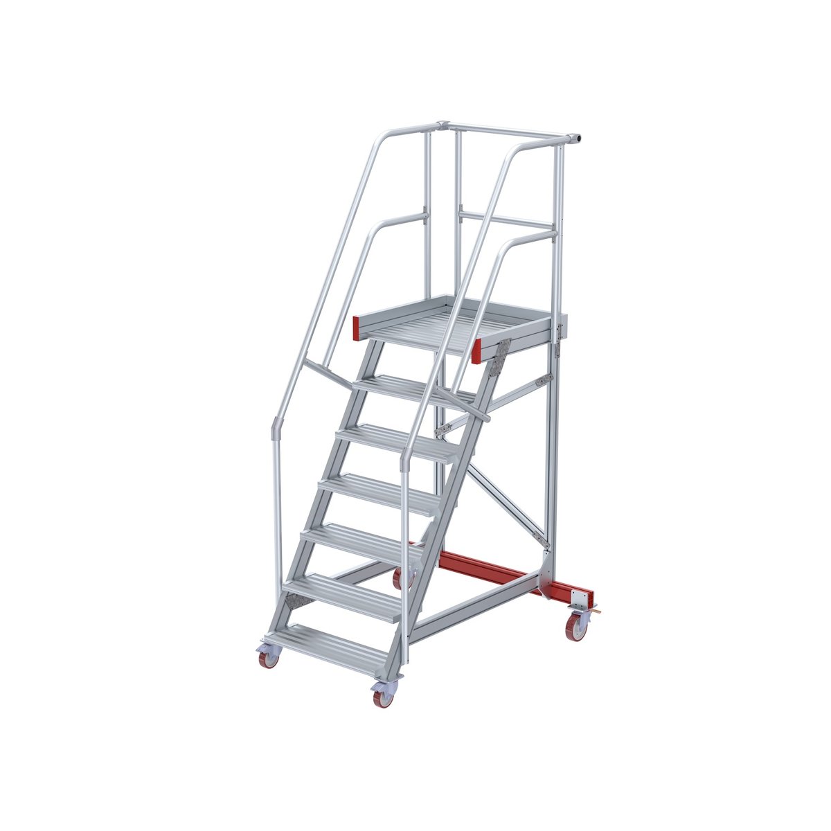 Wartungsbühne 60° mit 7 Stufen 600 mm breiteuroline – der sichere AufstiegMobile Aluminium – Wartungsbühnen als sicheres und flexibles Arbeitsmittel. Geeignet für Arbeiten an großen Maschinen, Containern, Nutzfahrzeugen oder Regalen. Durch die leichtgängigen Lenkrollen können die Wartungsbühnen flexibel und einfach an verschiedene Einsatzorte transportiert werden.Diese Wartungsbühnen sind in der Standardausführung für unterschiedliche örtliche Gegebenheiten in zahlreichen Ausführungen verfügbar, welche Sie in unseren Empfehlungen verlinkt finden. Die hervorragend verarbeitete Steigtechnik Produktserie mit wählbaren Steigungswinkeln (45° für einen bequemen Aufstieg, 60° für beengte Platzverhältnisse) verschiedene Höhen und 3 Standard Stufenbreiten (600 mm, 800 mm, 1000 mm), vereinen Sicherheit und Flexibilität. Als Standard – Stufenausführungen haben Sie die Wahl zwischen Stufen in Alu…
