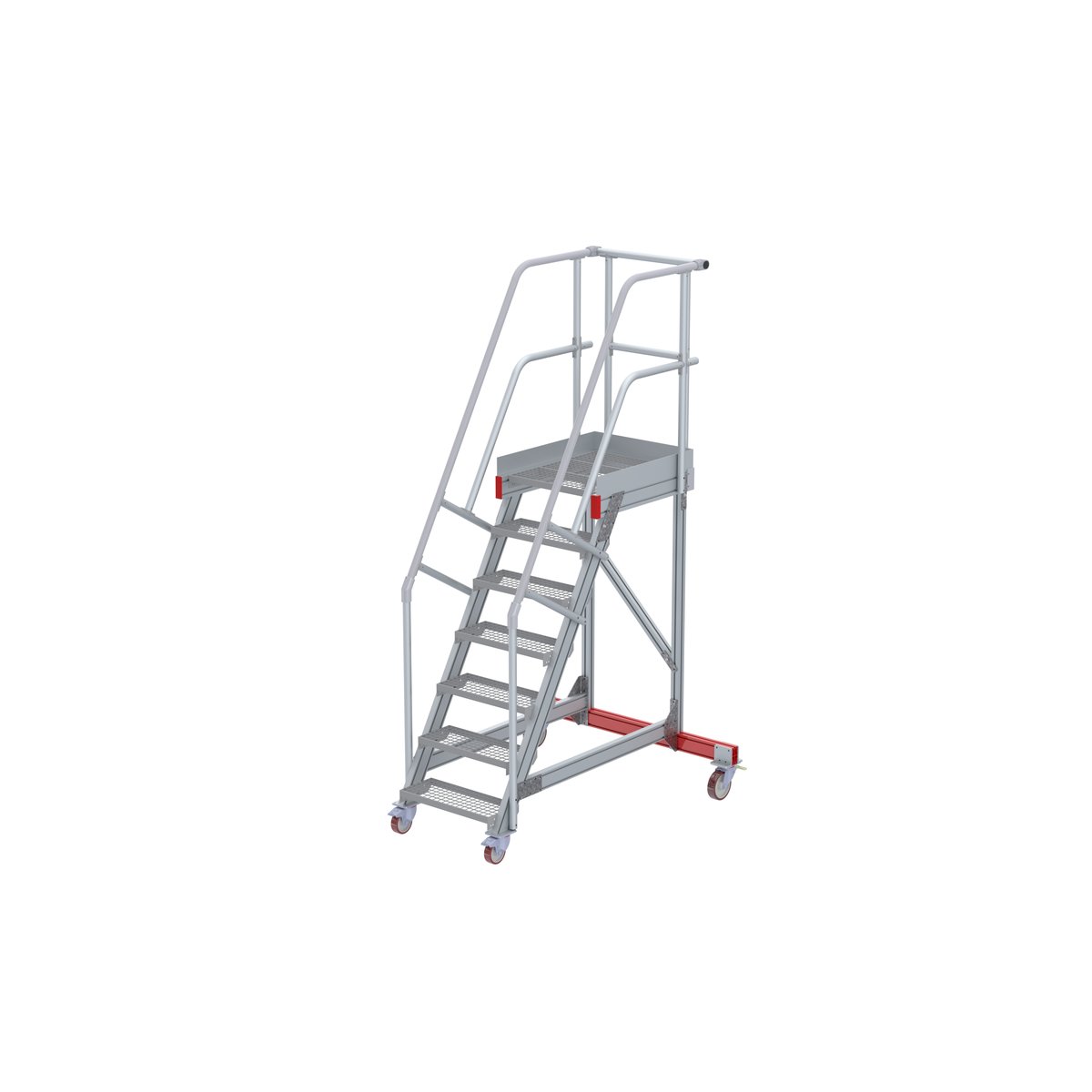 Wartungsbühne 60° mit 7 Stufen 600 mm breiteuroline – der sichere AufstiegMobile – Wartungsbühnen als sicheres und flexibles Arbeitsmittel. Geeignet für Arbeiten an großen Maschinen, Containern, Nutzfahrzeugen oder Regalen. Durch die leichtgängigen Lenkrollen können die Wartungsbühnen flexibel und einfach an verschiedene Einsatzorte transportiert werden.Diese Wartungsbühnen sind in der Standardausführung für unterschiedliche örtliche Gegebenheiten in zahlreichen Ausführungen verfügbar, welche Sie in unseren Empfehlungen verlinkt finden. Die hervorragend verarbeitete Steigtechnik Produktserie mit wählbaren Steigungswinkeln (45° für einen bequemen Aufstieg, 60° für beengte Platzverhältnisse) verschiedene Höhen und 3 Standard Stufenbreiten (600 mm, 800 mm, 1000 mm), vereinen Sicherheit und Flexibilität. Als Standard – Stufenausführungen haben Sie die Wahl zwischen Stufen in Alu-gerieft o…