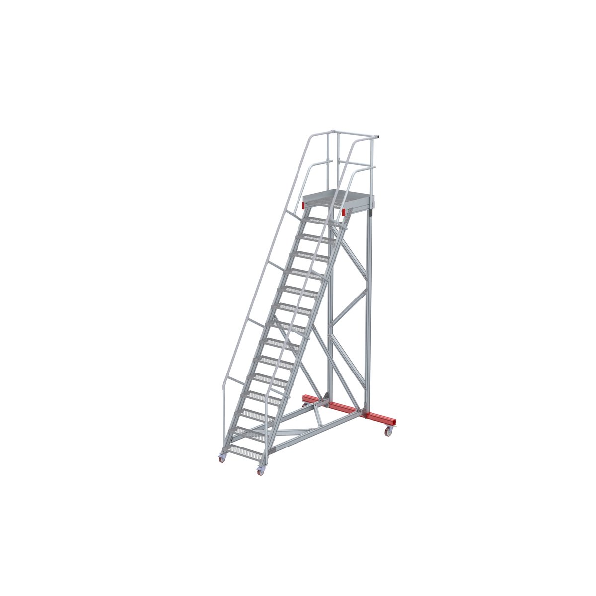 Wartungsbühne 60° mit 16 Stufen 800 mm breiteuroline – der sichere AufstiegMobile – Wartungsbühnen als sicheres und flexibles Arbeitsmittel. Geeignet für Arbeiten an großen Maschinen, Containern, Nutzfahrzeugen oder Regalen. Durch die leichtgängigen Lenkrollen können die Wartungsbühnen flexibel und einfach an verschiedene Einsatzorte transportiert werden.Diese Wartungsbühnen sind in der Standardausführung für unterschiedliche örtliche Gegebenheiten in zahlreichen Ausführungen verfügbar, welche Sie in unseren Empfehlungen verlinkt finden. Die hervorragend verarbeitete Steigtechnik Produktserie mit wählbaren Steigungswinkeln (45° für einen bequemen Aufstieg, 60° für beengte Platzverhältnisse) verschiedene Höhen und 3 Standard Stufenbreiten (600 mm, 800 mm, 1000 mm), vereinen Sicherheit und Flexibilität. Als Standard – Stufenausführungen haben Sie die Wahl zwischen Stufen in Alu-gerieft …