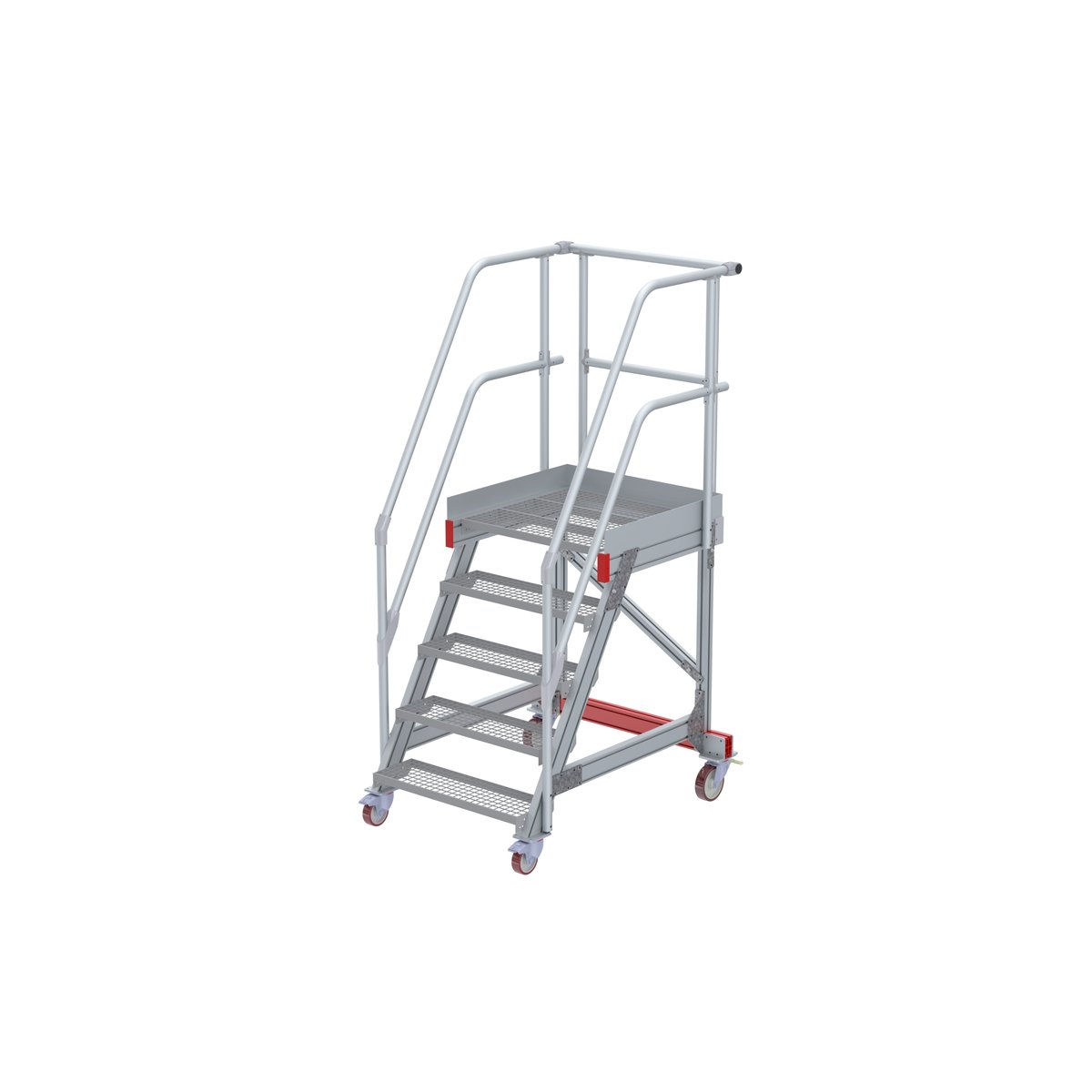 Wartungsbühne 60° mit 5 Stufen 800 mm breiteuroline – der sichere AufstiegMobile – Wartungsbühnen als sicheres und flexibles Arbeitsmittel. Geeignet für Arbeiten an großen Maschinen, Containern, Nutzfahrzeugen oder Regalen. Durch die leichtgängigen Lenkrollen können die Wartungsbühnen flexibel und einfach an verschiedene Einsatzorte transportiert werden.Diese Wartungsbühnen sind in der Standardausführung für unterschiedliche örtliche Gegebenheiten in zahlreichen Ausführungen verfügbar, welche Sie in unseren Empfehlungen verlinkt finden. Die hervorragend verarbeitete Steigtechnik Produktserie mit wählbaren Steigungswinkeln (45° für einen bequemen Aufstieg, 60° für beengte Platzverhältnisse) verschiedene Höhen und 3 Standard Stufenbreiten (600 mm, 800 mm, 1000 mm), vereinen Sicherheit und Flexibilität. Als Standard – Stufenausführungen haben Sie die Wahl zwischen Stufen in Alu-gerieft o…