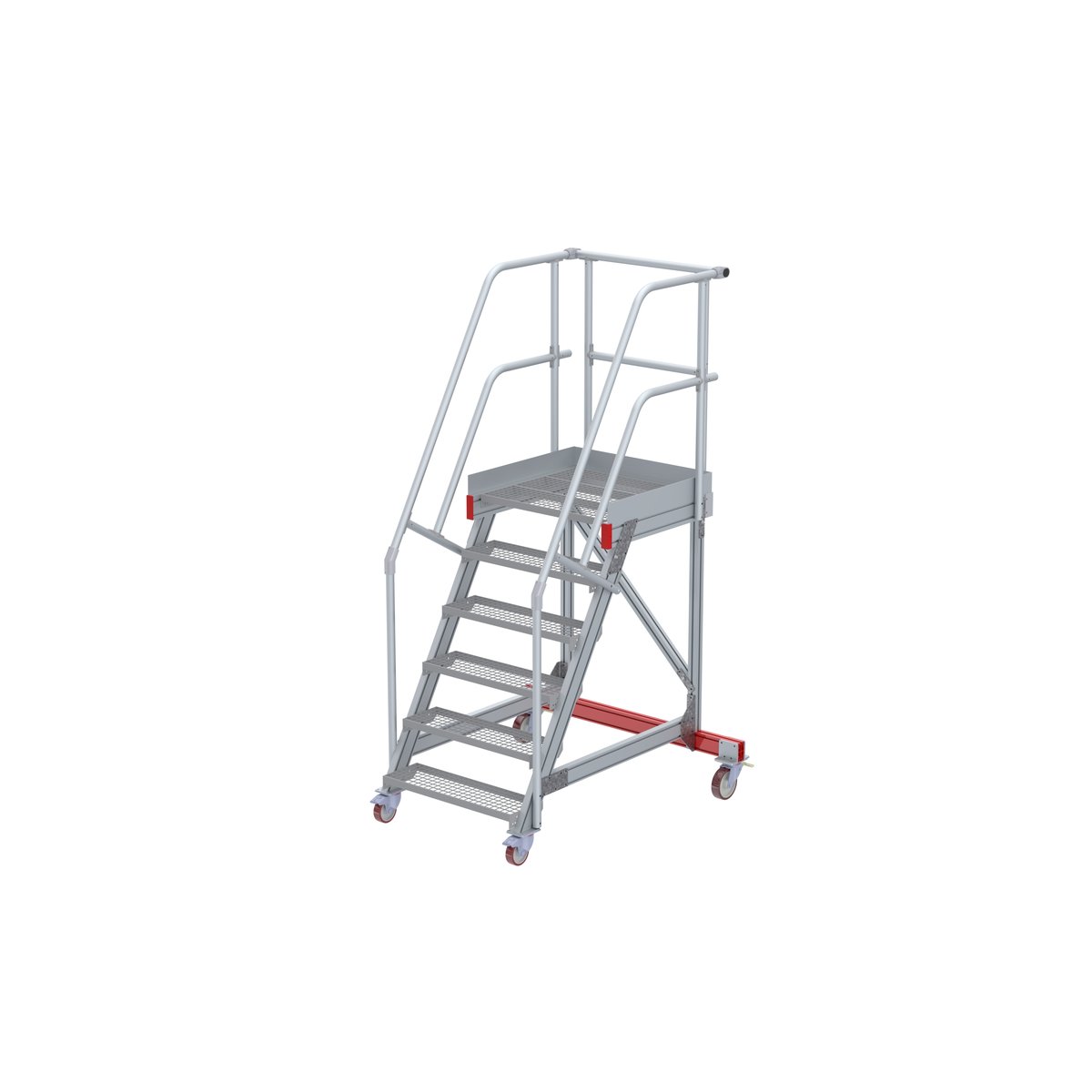 Wartungsbühne 60° mit 6 Stufen 800 mm breiteuroline – der sichere AufstiegMobile – Wartungsbühnen als sicheres und flexibles Arbeitsmittel. Geeignet für Arbeiten an großen Maschinen, Containern, Nutzfahrzeugen oder Regalen. Durch die leichtgängigen Lenkrollen können die Wartungsbühnen flexibel und einfach an verschiedene Einsatzorte transportiert werden.Diese Wartungsbühnen sind in der Standardausführung für unterschiedliche örtliche Gegebenheiten in zahlreichen Ausführungen verfügbar, welche Sie in unseren Empfehlungen verlinkt finden. Die hervorragend verarbeitete Steigtechnik Produktserie mit wählbaren Steigungswinkeln (45° für einen bequemen Aufstieg, 60° für beengte Platzverhältnisse) verschiedene Höhen und 3 Standard Stufenbreiten (600 mm, 800 mm, 1000 mm), vereinen Sicherheit und Flexibilität. Als Standard – Stufenausführungen haben Sie die Wahl zwischen Stufen in Alu-gerieft o…