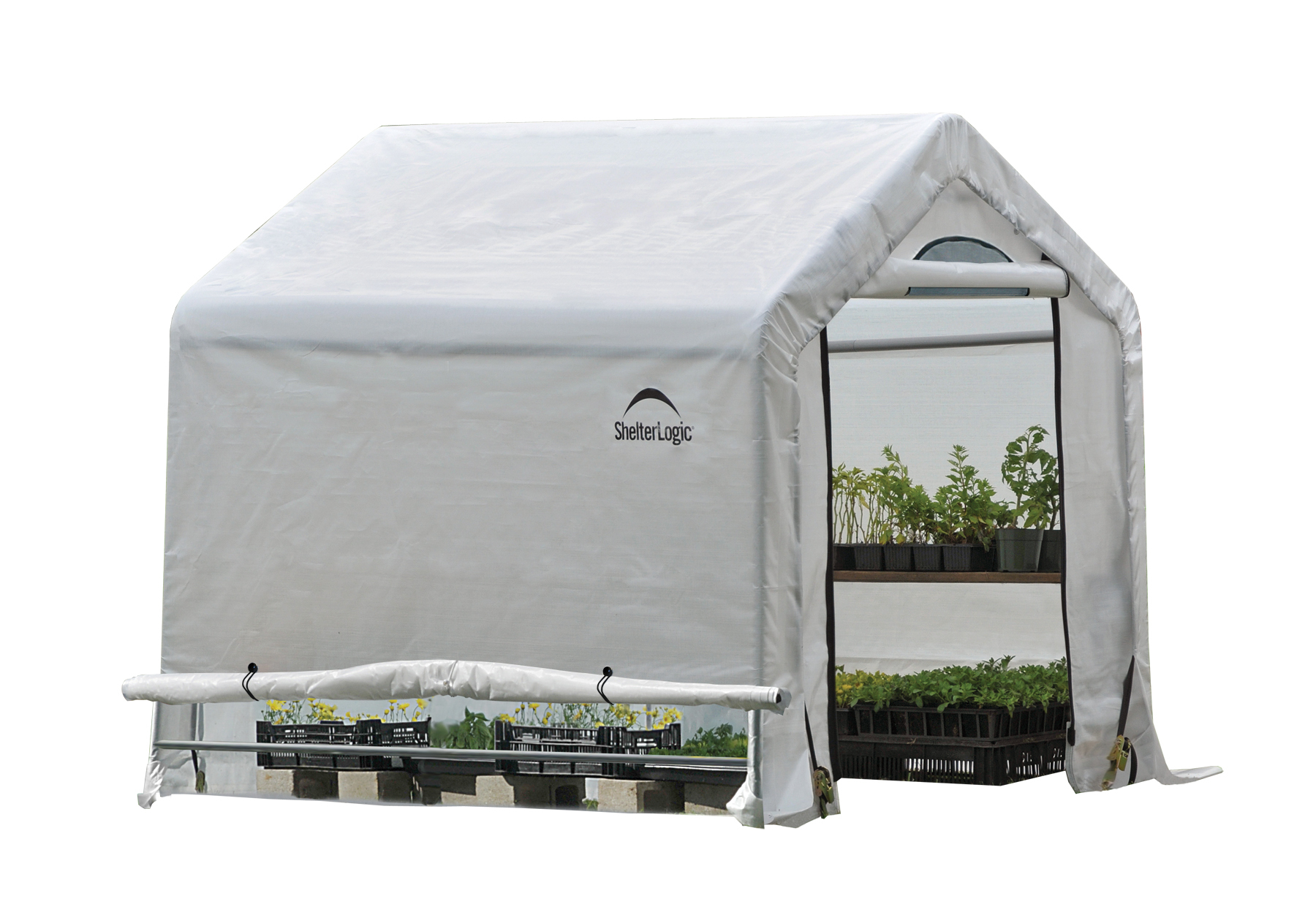 Foliengewächshaus ShelterLogic Gewächshaus Das mobile Gewächshaus von ShelterLogic ist Dank einfachem Auf- und Abbau optimal für den saisonalen Gebrauch geeignet. Speziell Tomaten können in diesem Gewächshaus geschützt und sicher angezogen werden. Die hochwertige Plane aus Polyethylen (160g/m²) ist UV-beständig und durch eine spezielle Versiegelung sowie eine nahtlose Verarbeitung absolut wasserdicht. Das massive Gestell aus 3,5 cm dickem Stahl ist zusätzlich beschichtet und dadurch bestens geschützt vor Rost und Witterungseinflüssen. Eine hohe Lebensdauer und langer Gärtnerspaß sind somit garantiert. Patentierte Stabilisatoren (ShelterLogic® 3X Steel Stabilizers) gewährleisten eine besonders hohe Belastbarkeit der Konstruktion — dreimal höher als bei anderen Foliengewächshäusern. Für eine ausgewogene Luftzirkulation im Gewächshaus sorgen zwei Fenster: eines in der Tür im Eingangsbereich sowie ein weiteres an der Rückseite. Die Seitenwände lassen sich einfach aufrollen und durch Gummis befestigen, sodass eine optimale Belüftung auch bei hohen Temperaturen im Sommer gewährleistet ist. Im Lieferumfang enthalten sind neben 8 Zurrgurten, die für eine sichere Befestigung der Plane am Gestell sorgen, auch 4 Sturmanker. Diese verankern das Gewächshaus sicher im Boden. Ein Fundament ist nicht notwendig. – Breite: 180, – Gewicht: 23, – Höhe: 180, – Länge: 180, – Material: Stahl – PE-Plane