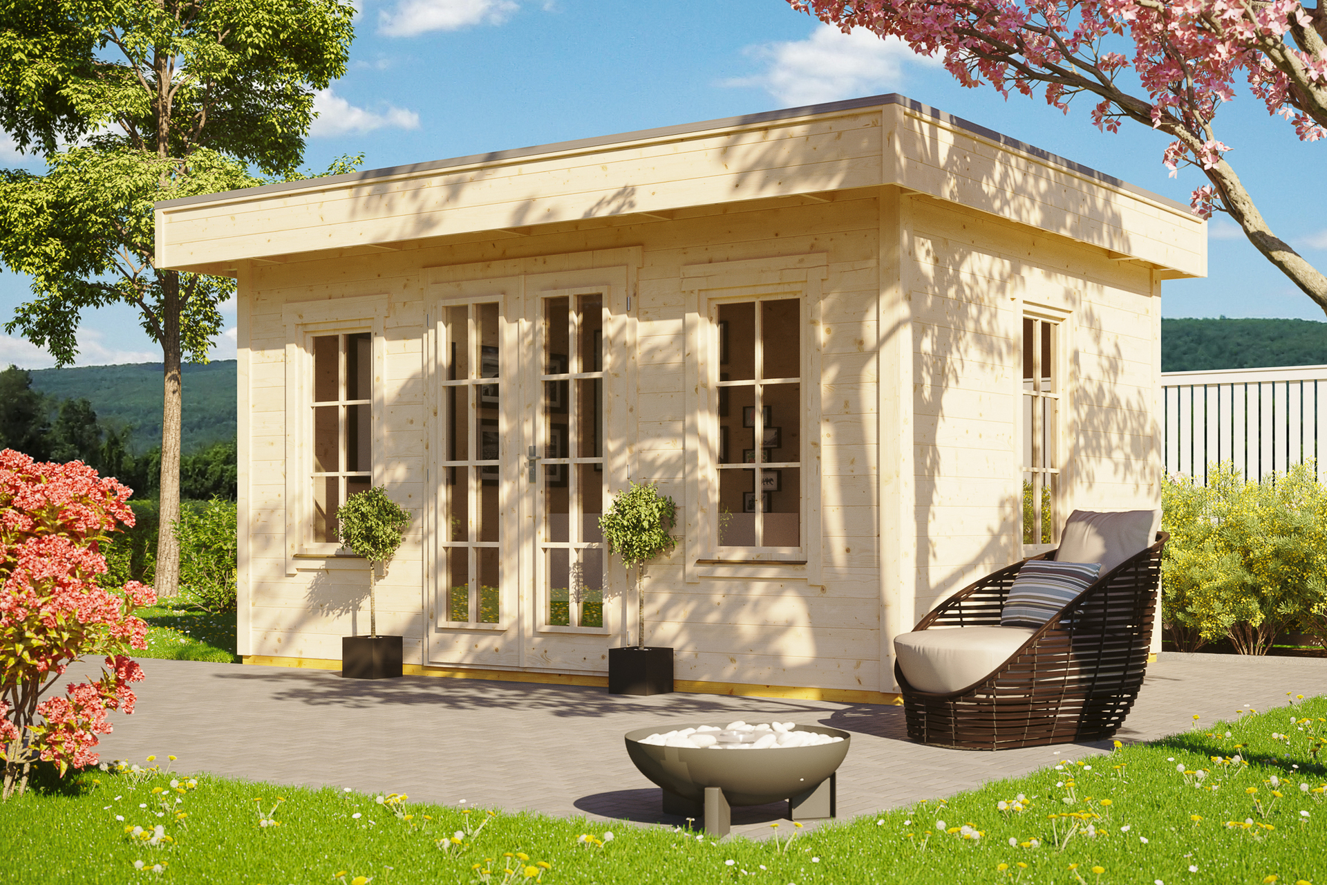 • Größe 420 x 300 cm • farblich unbehandelt • hochwertiges nordisches Fichtenholz • 4-seitig gehobelte 45 mm Wandbohlen mit Doppelnut und Feder • Steck-Schraub-Eckverbindung • Fußboden 19 mm inkl. imprägnierten Grundlagern • Tür und Fenster mit Isolierglas und Gummidichtung sowie aufgesetztem Sprossenrahmen (Sprossenrahmen können wahlweise montiert oder weggelassen werden) • Tür mit Profilzylinderschloss und 3 Schlüsseln • Durchgangsmaß Tür B x H 112 x 181,5 cm • Fenster mit Aluminium-Abtropfkante und Dreh-Kipp-Beschlag • Dach 19 mm Profilschalung mit Nut und Feder sowie Aluminiumabschlusskante, inkl. 1 Lage Dachpappe zur Ersteindeckung • Aufgrund geringer Dachneigung Eindeckung mit Dachschindeln nicht möglich (KSK-M Dachbahnen sind optional als Zubehör erhältlich)