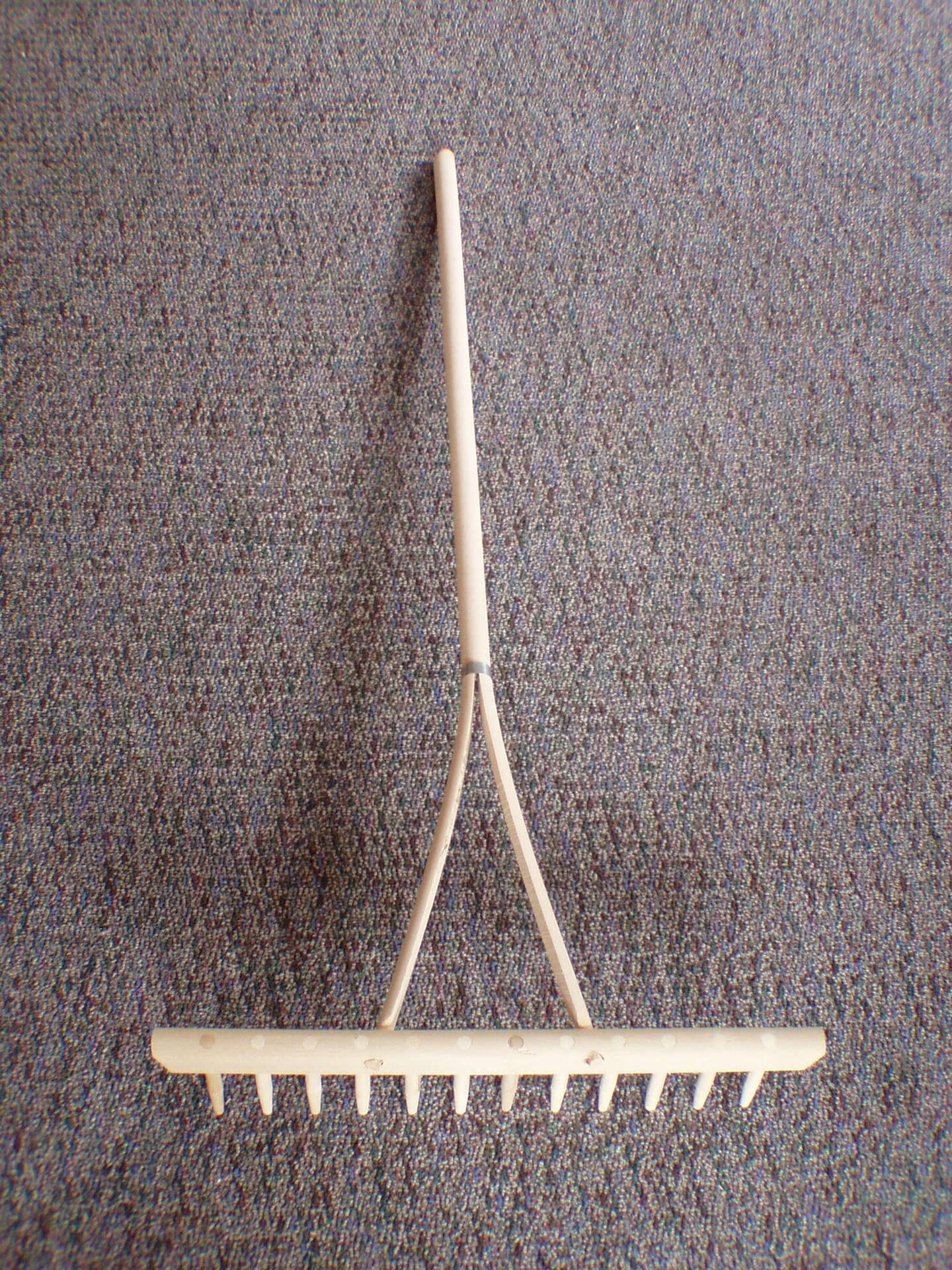 Dieser Gartenrechen oder Heurechen besteht komplett aus Buche. Das Hartholz ist bestens für Sensenstiele oder Holzrechen geeignet. Mit diesem hölzernen Gabelrechen können Sie besonders schnell und sauber verwilderte oder verwucherte Gebiete säubern. Im Gegensatz zum Metallrechen können Sie mit einem Holzrechen das Gelände viel besser durchkämmen, da das Material bedeutend weniger nachgibt. Schnittgut oder Blätter können so rasch entfernt werden. Auch bei der Aussaat erweist sich der Holzrechen als wahrer Helfer. Hierbei wird er zur Auflockerung der Erde oder zum Glattziehen verwendet. Die Holzzinken bleiben nicht im Boden stecken, sodass die Arbeiten ohne großen Kraftaufwand ausgeführt werden können. Daher wird ein solcher Holzrechen seit Jahrzehnten auch als Heurechen verwendet. Das getrocknete Gras lässt sich mit einem Holzrechen viel einfacher wenden. Ein Holzrechen wird häufig als Heurechen bezeichnet.