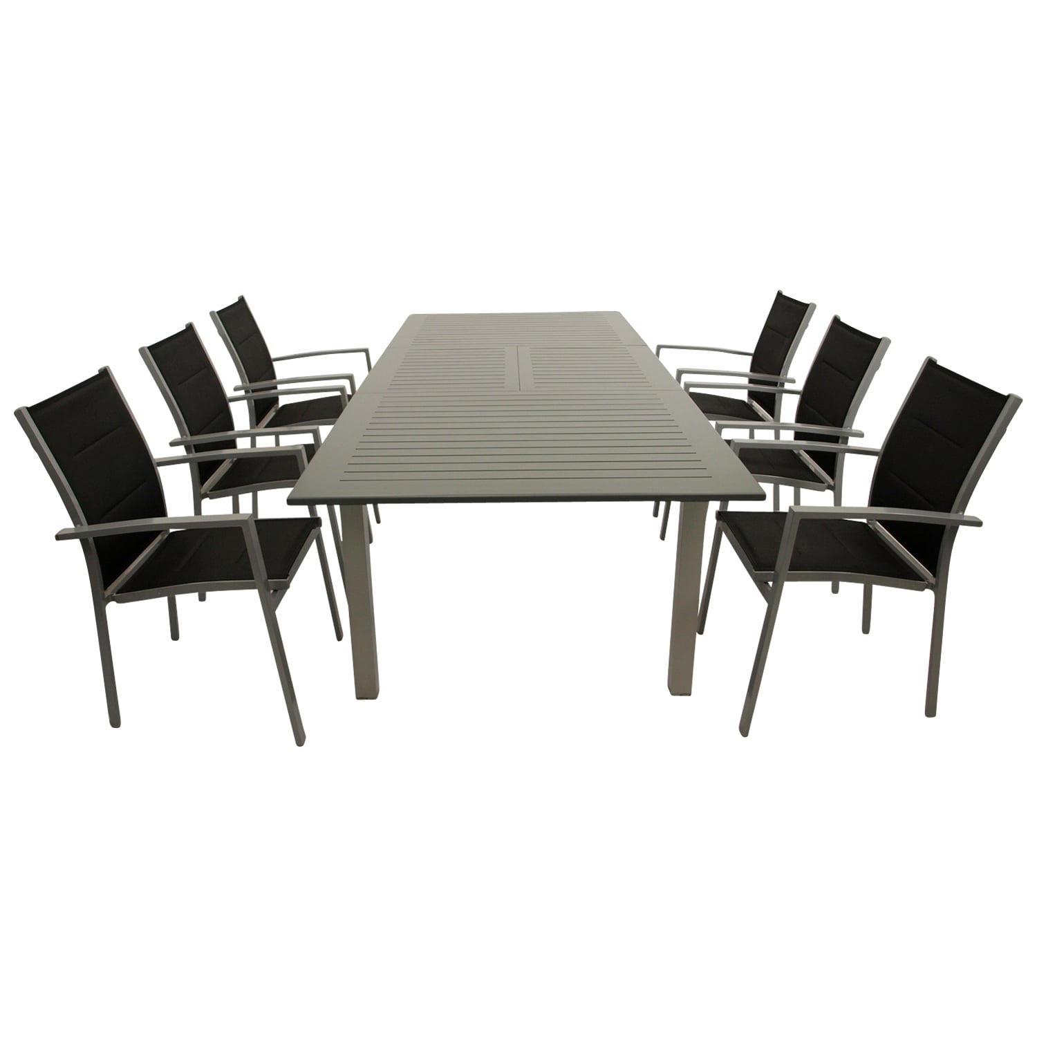 Garnitur 7-teilig, Ausziehtisch + Stapelsessel, Aluminium/Textillehne € 789,00 inkl. MwSt.