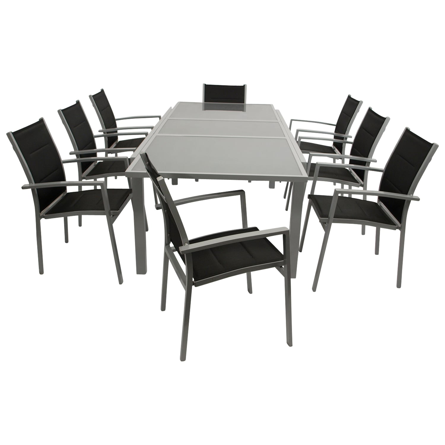 Garnitur 9-teilig, Ausziehtisch, Aluminium/Textilene/Glas € 785,00 inkl. MwSt.