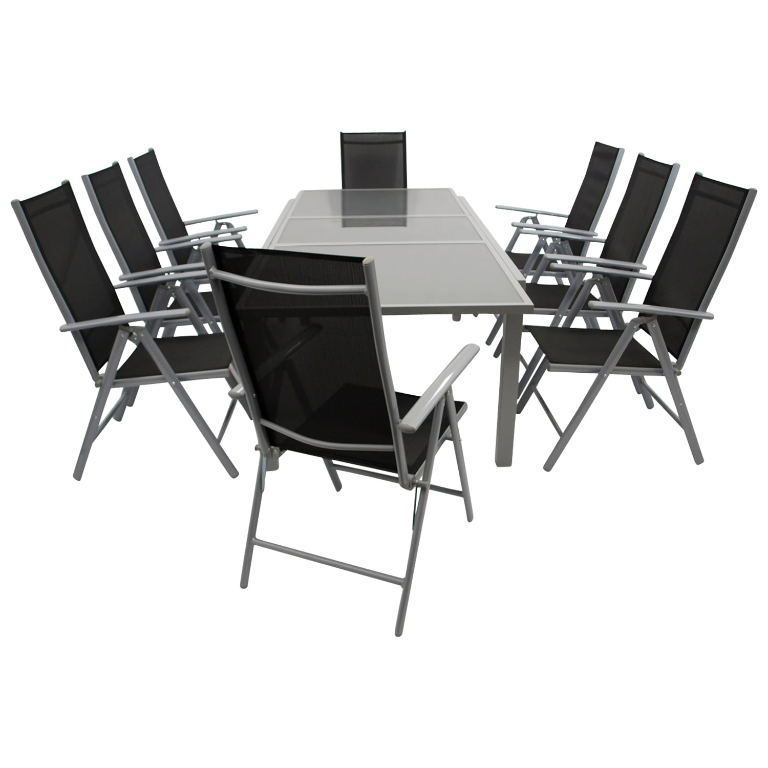 Garnitur 9-teilig, Ausziehtisch, Aluminium/Textilene/Glas € 555,00 inkl. MwSt.