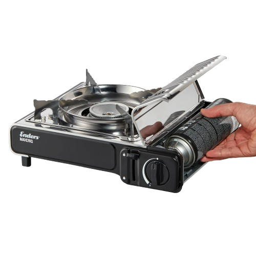 Maveriq® Einflammiger Gaskocher – Kompakt und sicher für dein Outdoor-Abenteuer Der Maveriq® Einflammige Gaskocher ist der ideale Begleiter für jedes Camping- oder Outdoor-Abenteuer. Mit seiner kompakten Größe und robusten Leistung sorgt dieser Gaskocher dafür, dass du unterwegs nicht auf Komfort und Sicherheit verzichten musst. Der stufenlos einstellbare Brenner mit hochwertigem Topfrost und einer Edelstahl-Oberfläche ermöglicht es dir, die perfekte Temperatur für jedes Gericht zu wählen. Warum den Maveriq® Gaskocher wählen? Der Maveriq® Gaskocher bietet maximale Sicherheit durch zahlreiche durchdachte Features. Mit einer Piezozündung, Überdruckabschaltung und einem Überhitzungsschutz bist du auf der sicheren Seite. Der Kocher ist nicht nur funktional, sondern auch platzsparend verpackt – im stoßfesten Kunststoffkoffer ist er perfekt für den Transport geeignet. Der Gaskocher ist ideal für die Verwendung im Freien und sorgt für die nötige Leistung, ohne Kompromisse einzugehen.