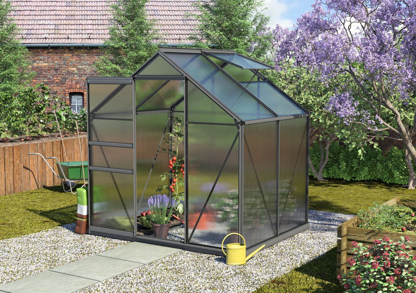 Leichter geht‘s nicht: Mit seinem unkomplizierten Aufbau, der großen Auswahl an Farben und der praktischen HKP-Verglasung verführt Calypso den Hobbygärtner zum Gewächshaus.