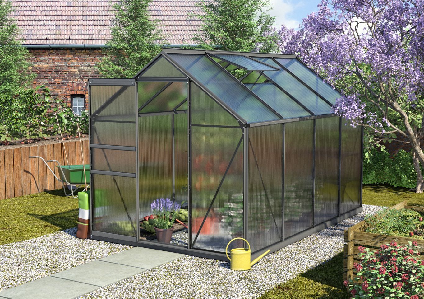Leichter geht‘s nicht: Mit seinem unkomplizierten Aufbau, der großen Auswahl an Farben und der praktischen HKP-Verglasung verführt Calypso den Hobbygärtner zum Gewächshaus.